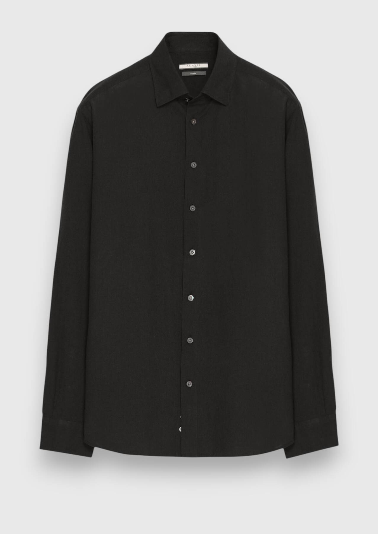 Siyah Düz Casual Fit Dokuma Casual %100 Pamuk Gömlek