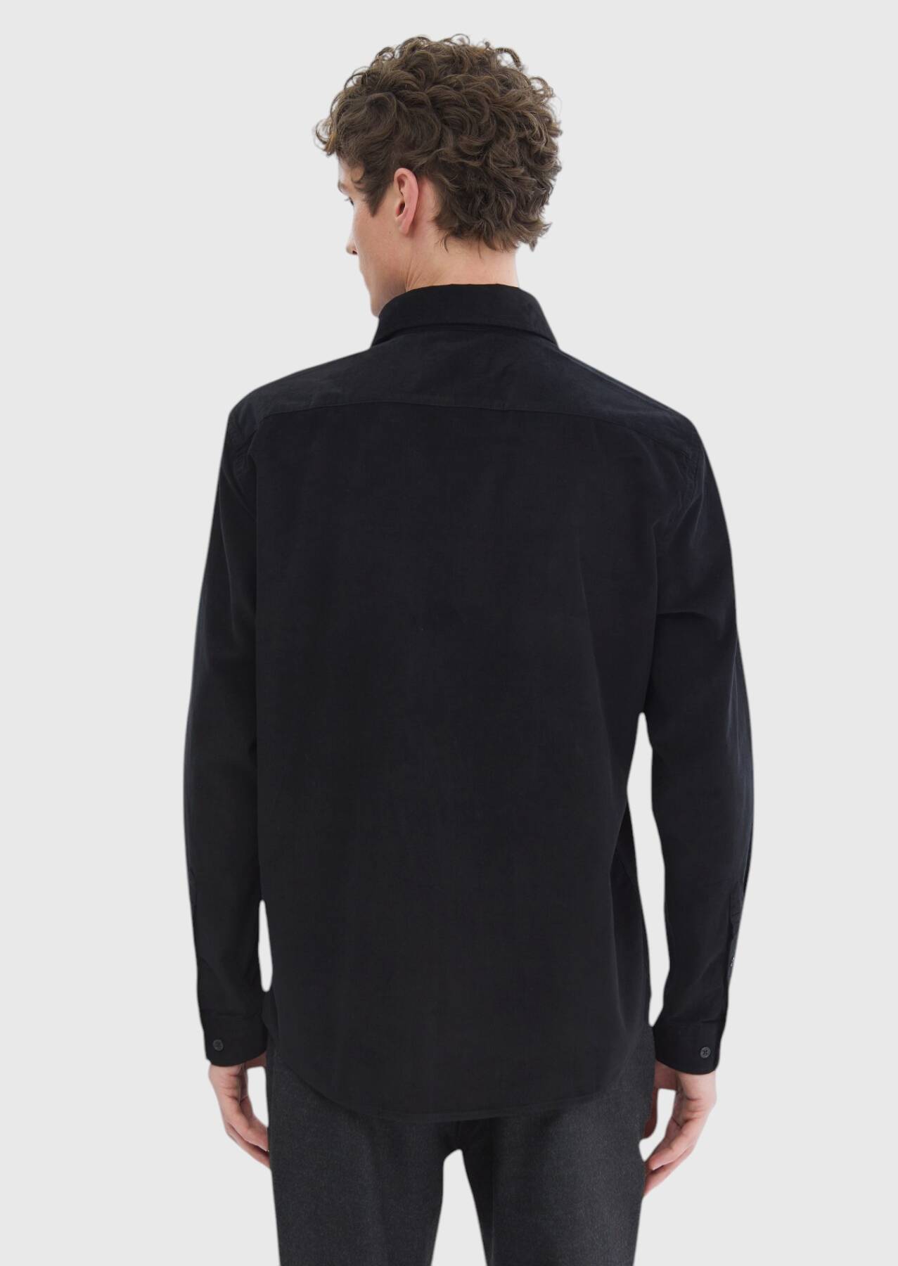Siyah Düz Casual Fit Dokuma Kadife Casual %100 Pamuk Gömlek