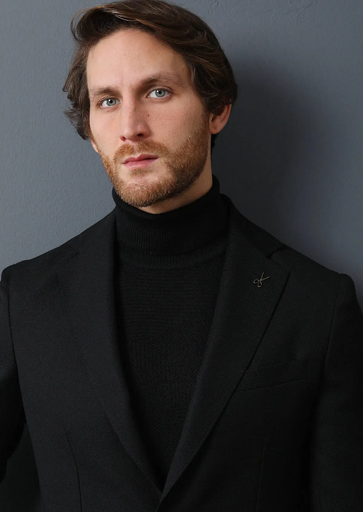 Model: Height: 187 cm, Chest: 98 cm, Waist: 78 cm, Hips: 92 cm, Size: 48