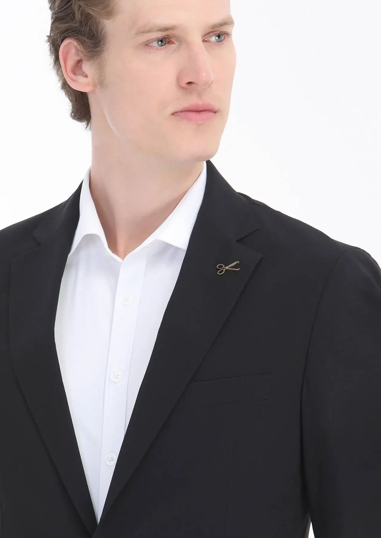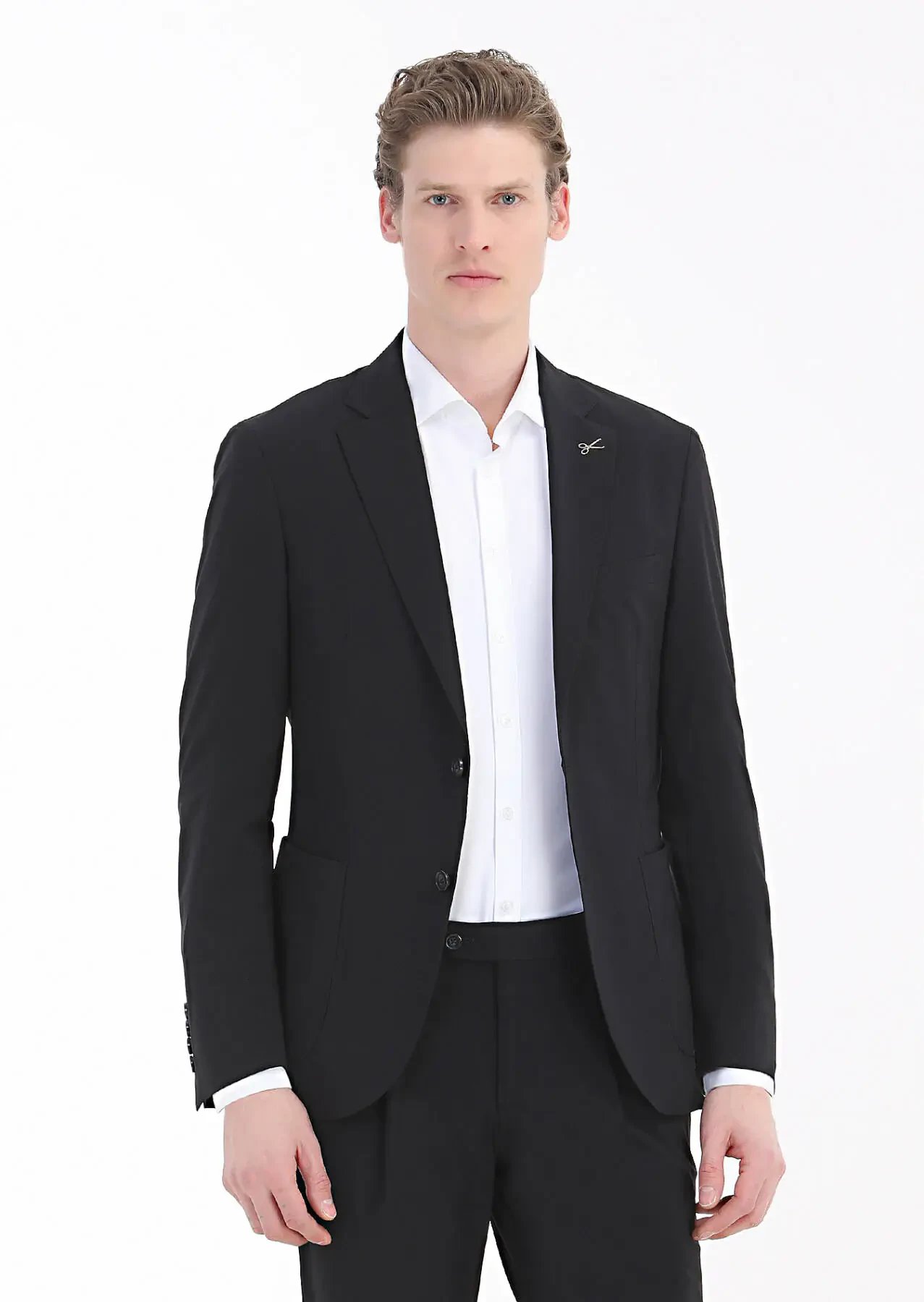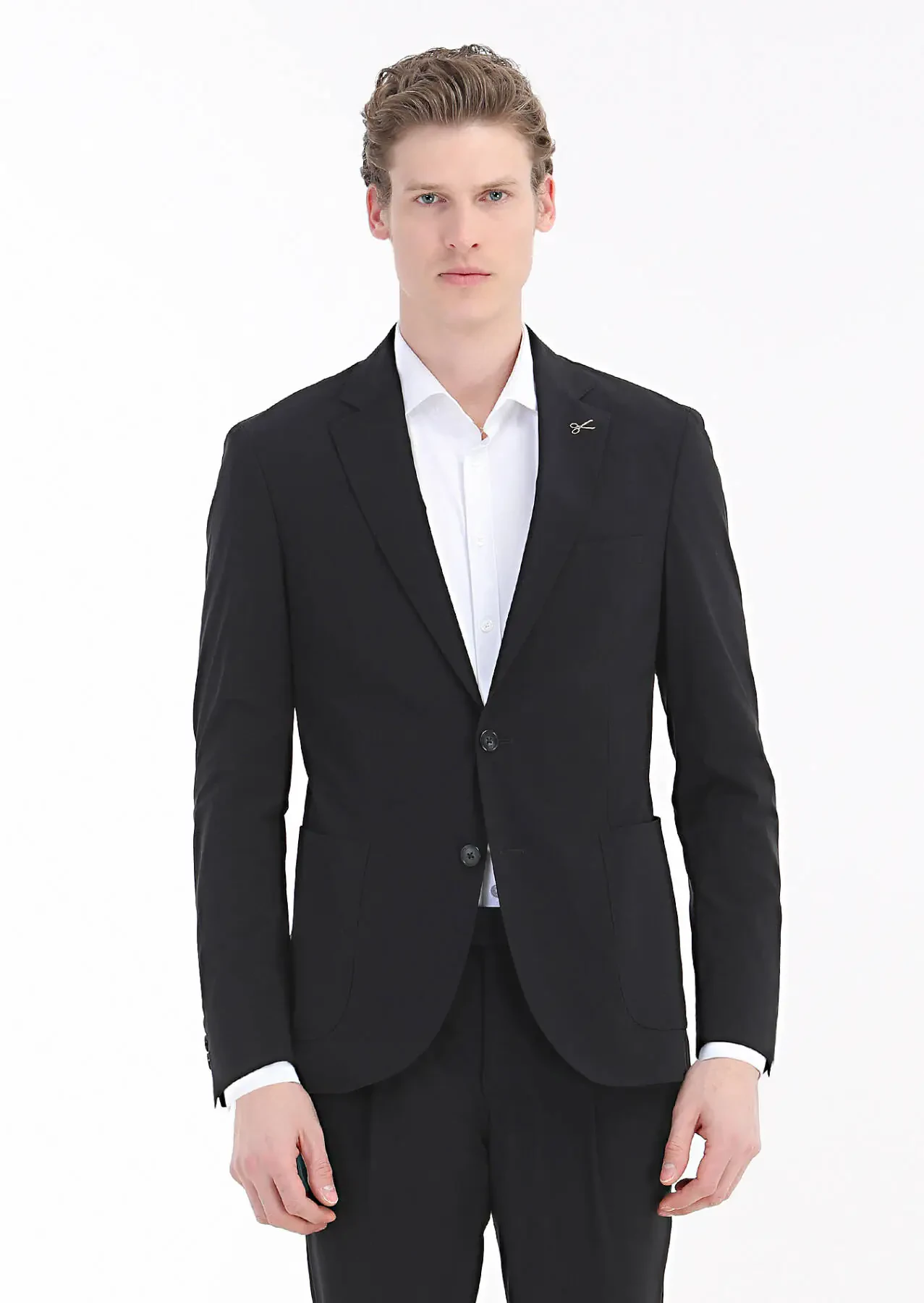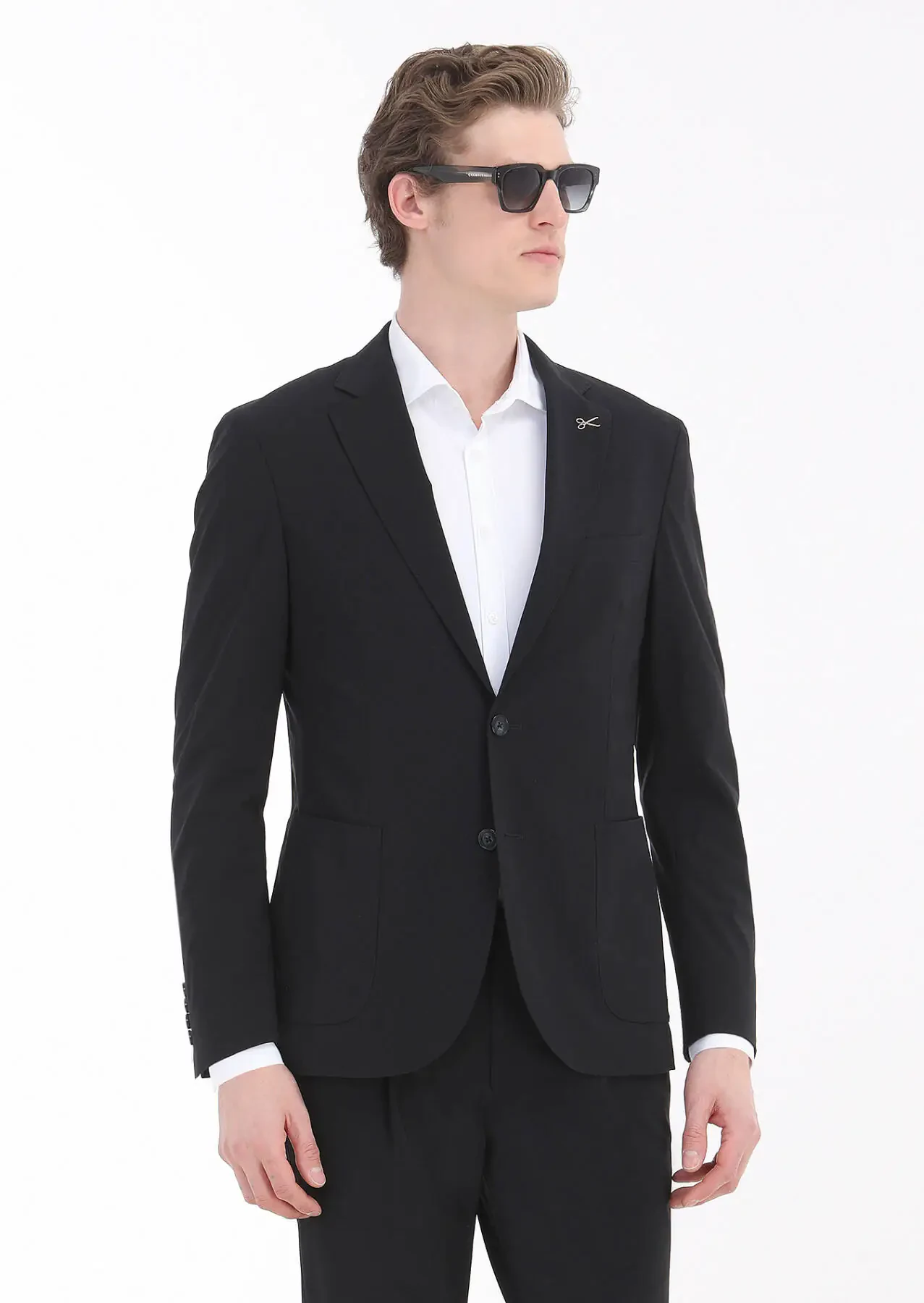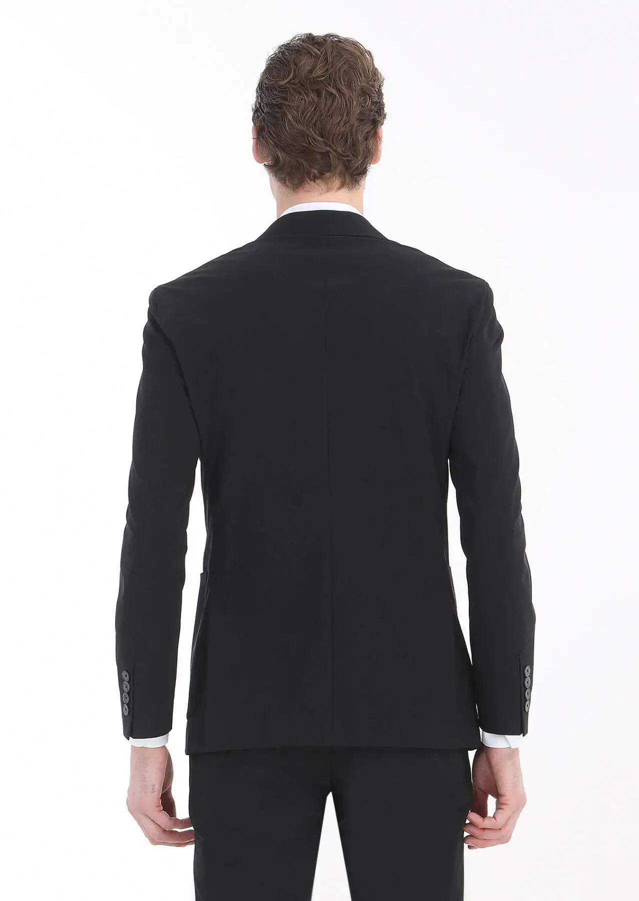 Siyah Düz Comfort Fit Örme Takım Elbise