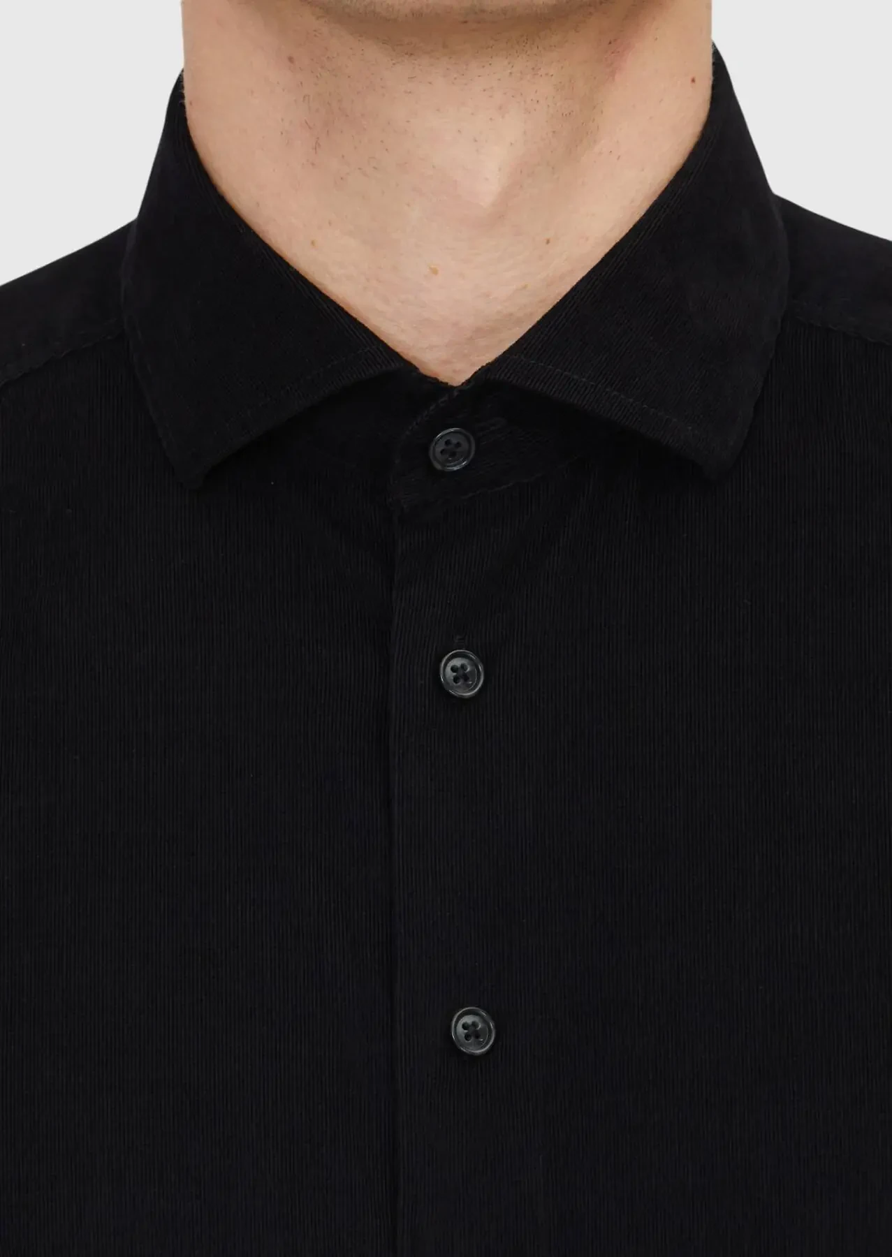 Siyah Düz Dokuma Kadife Casual %100 Pamuk Gömlek