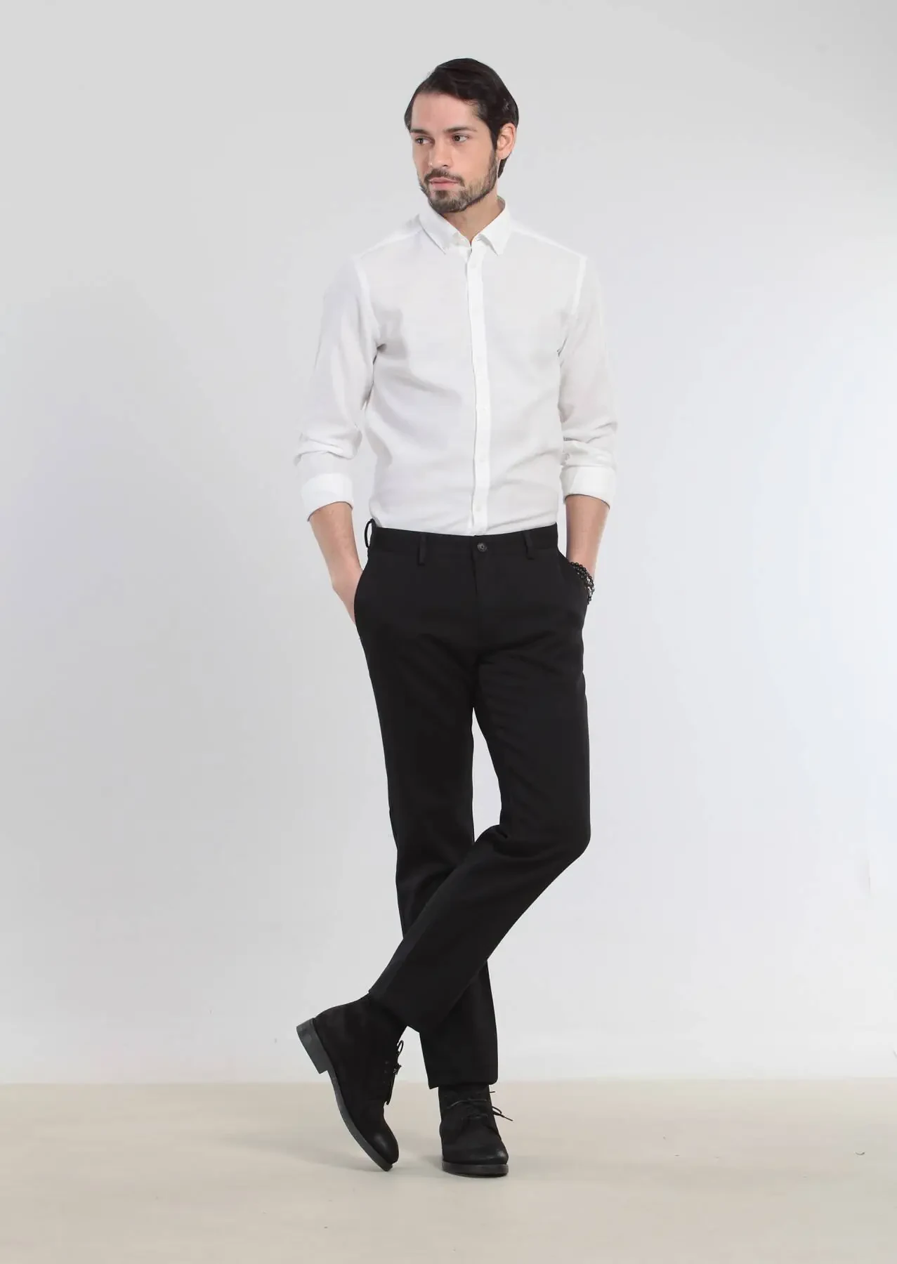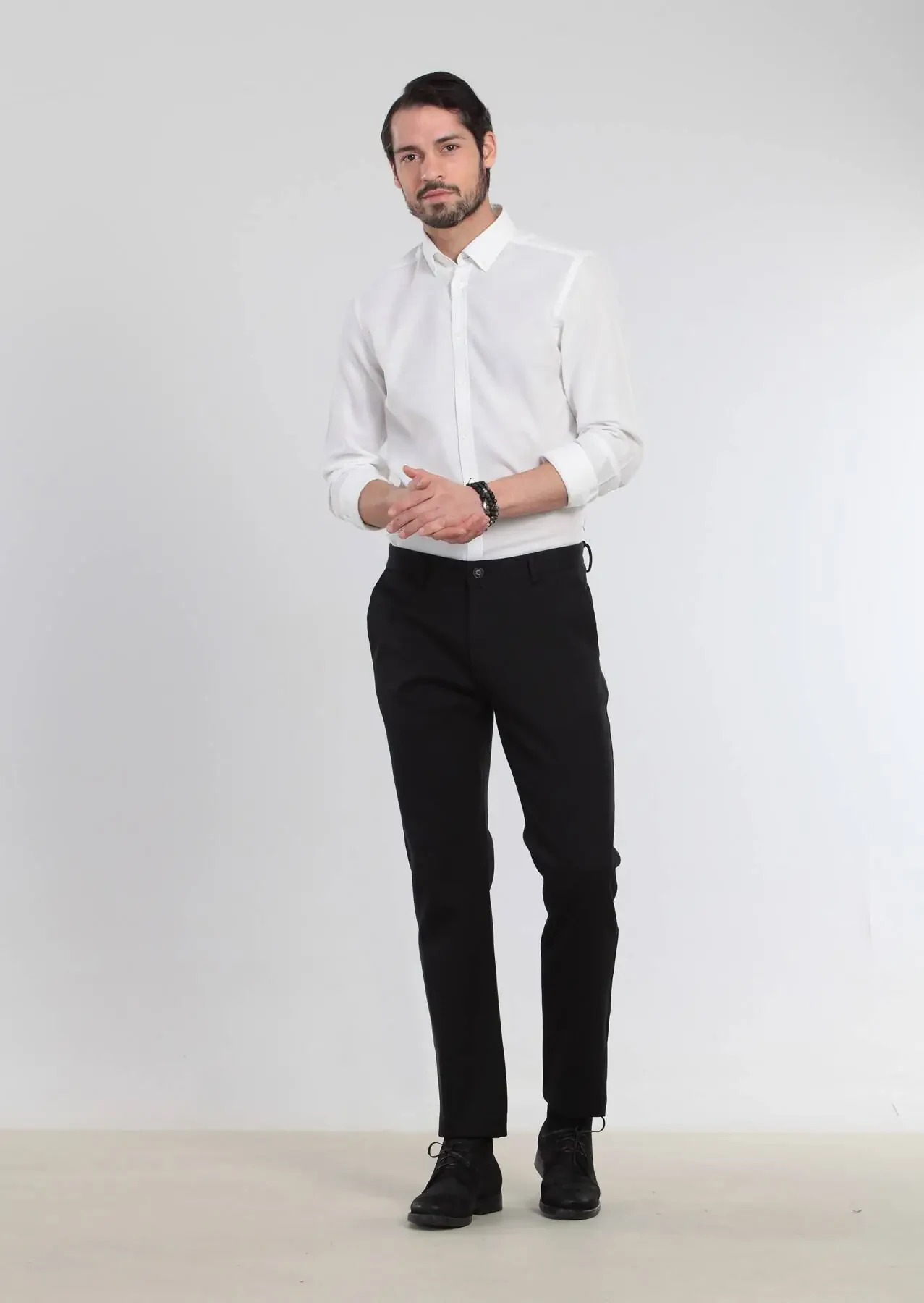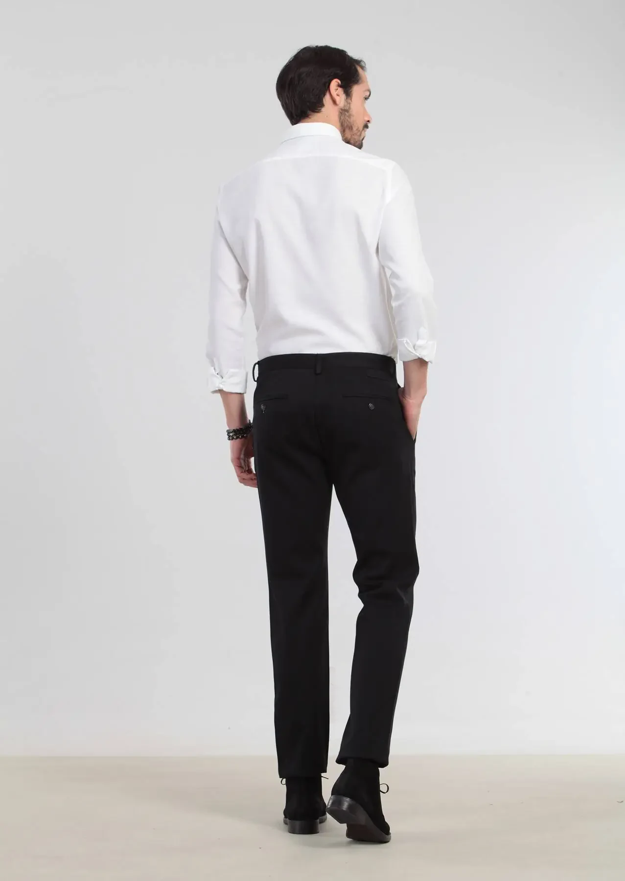 Siyah Düz Dokuma Regular Fit Casual %100 Pamuk Pantolon