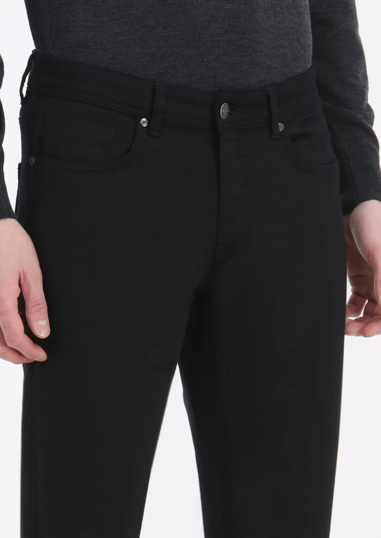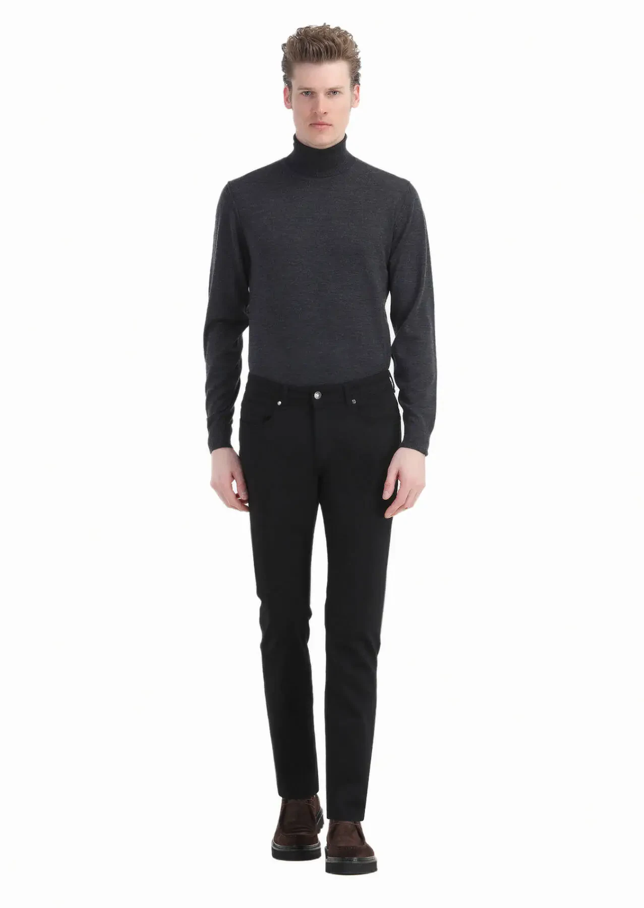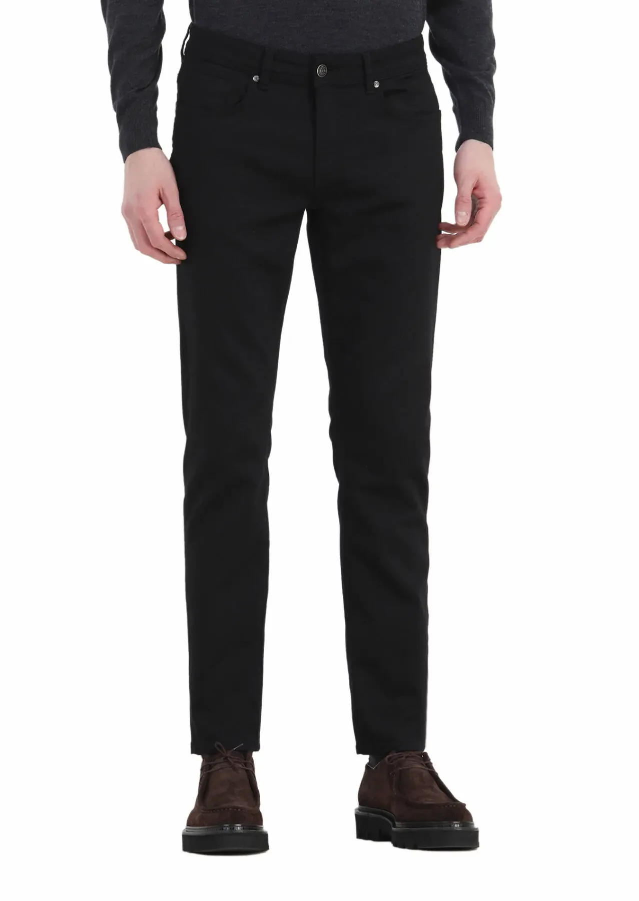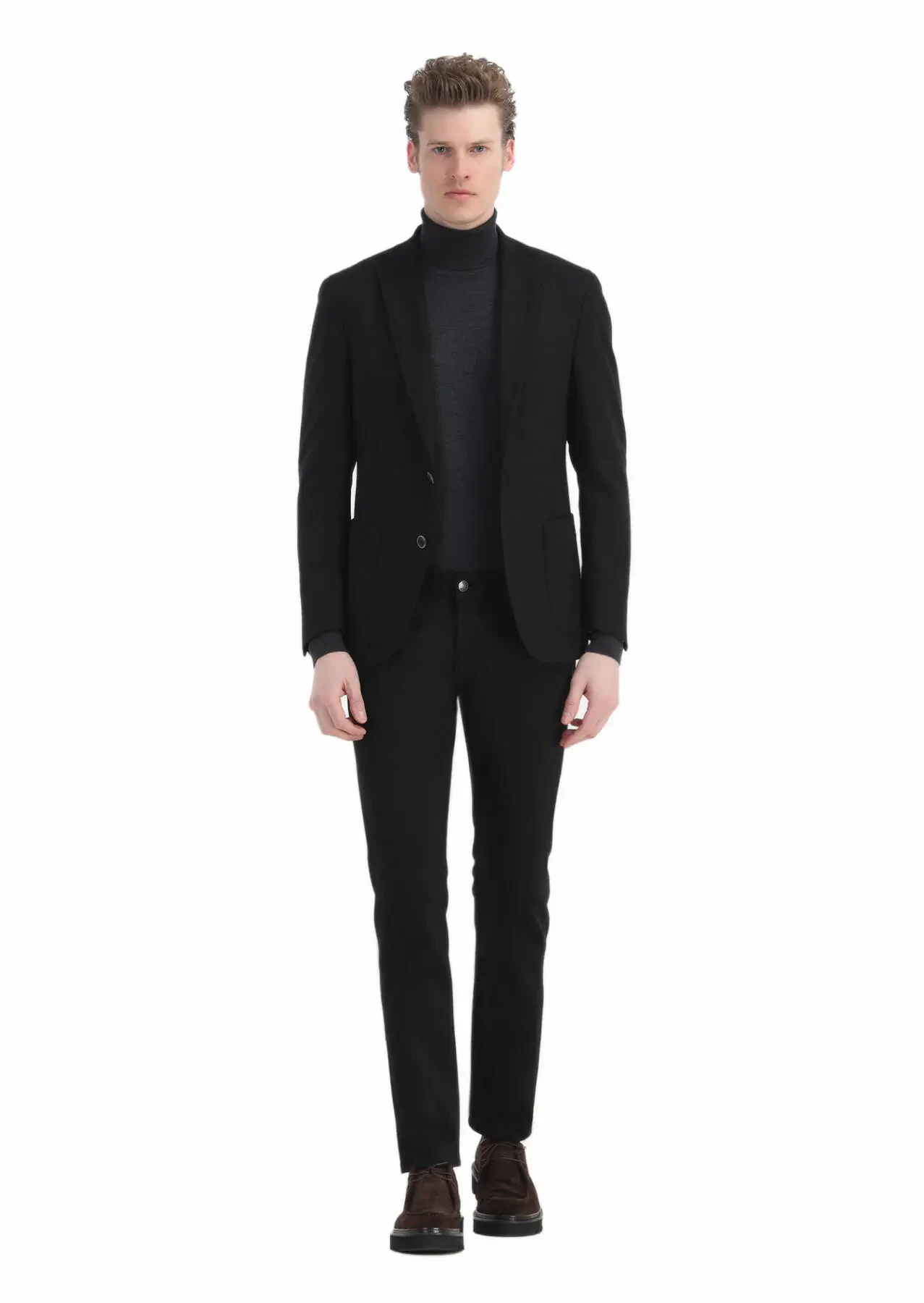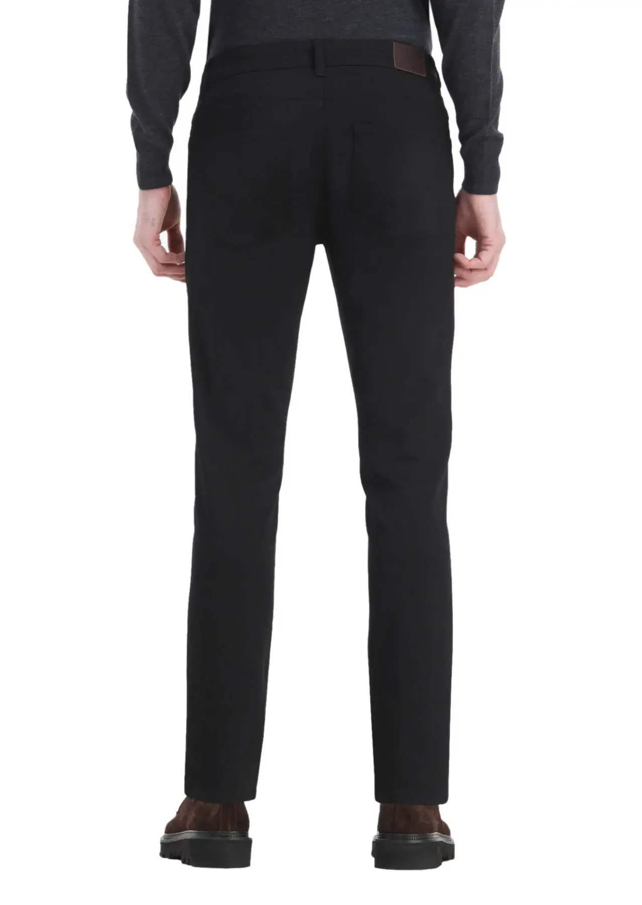 Siyah Düz Dokuma Slim Fit Casual Pamuk Karışımlı Pantolon