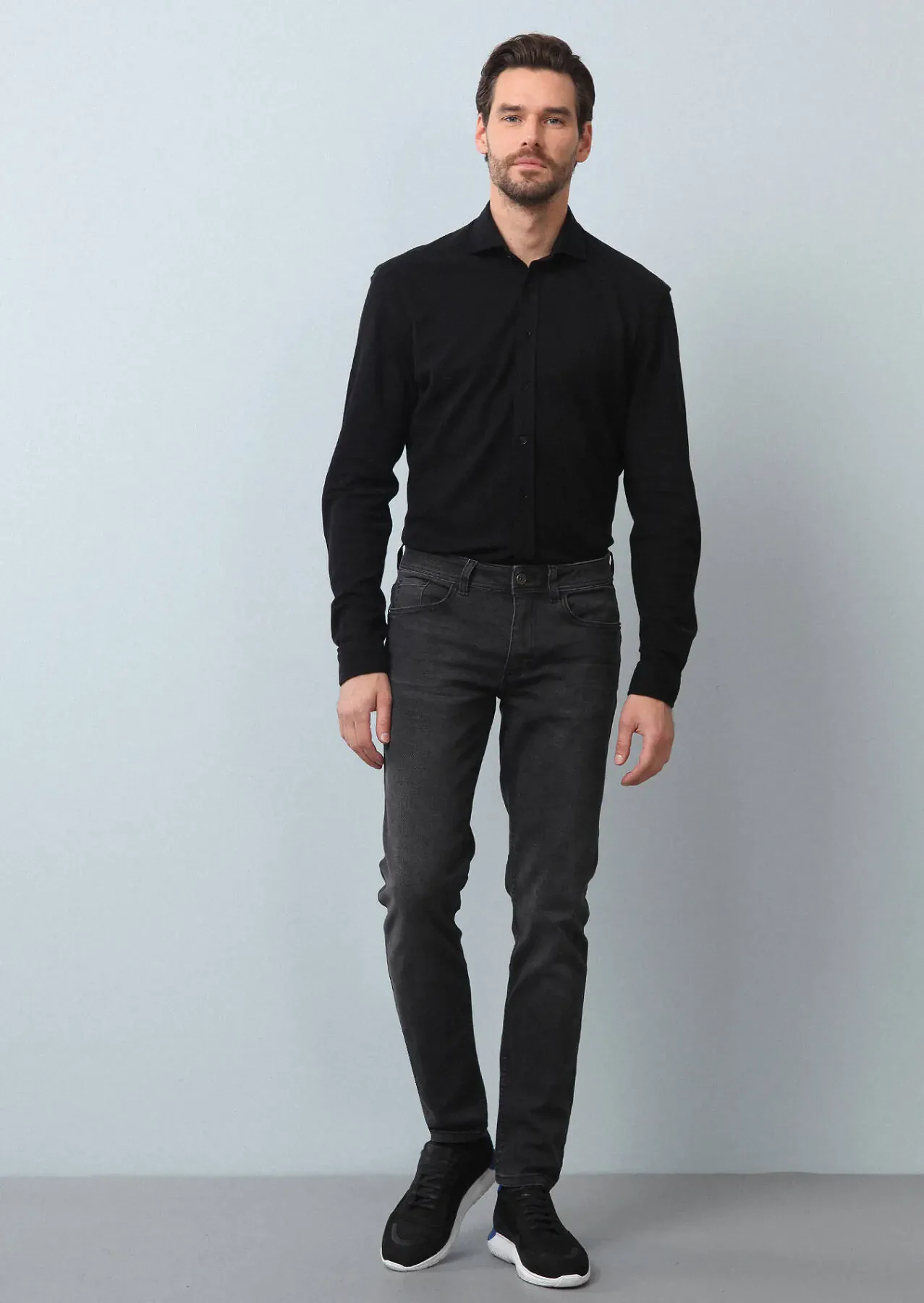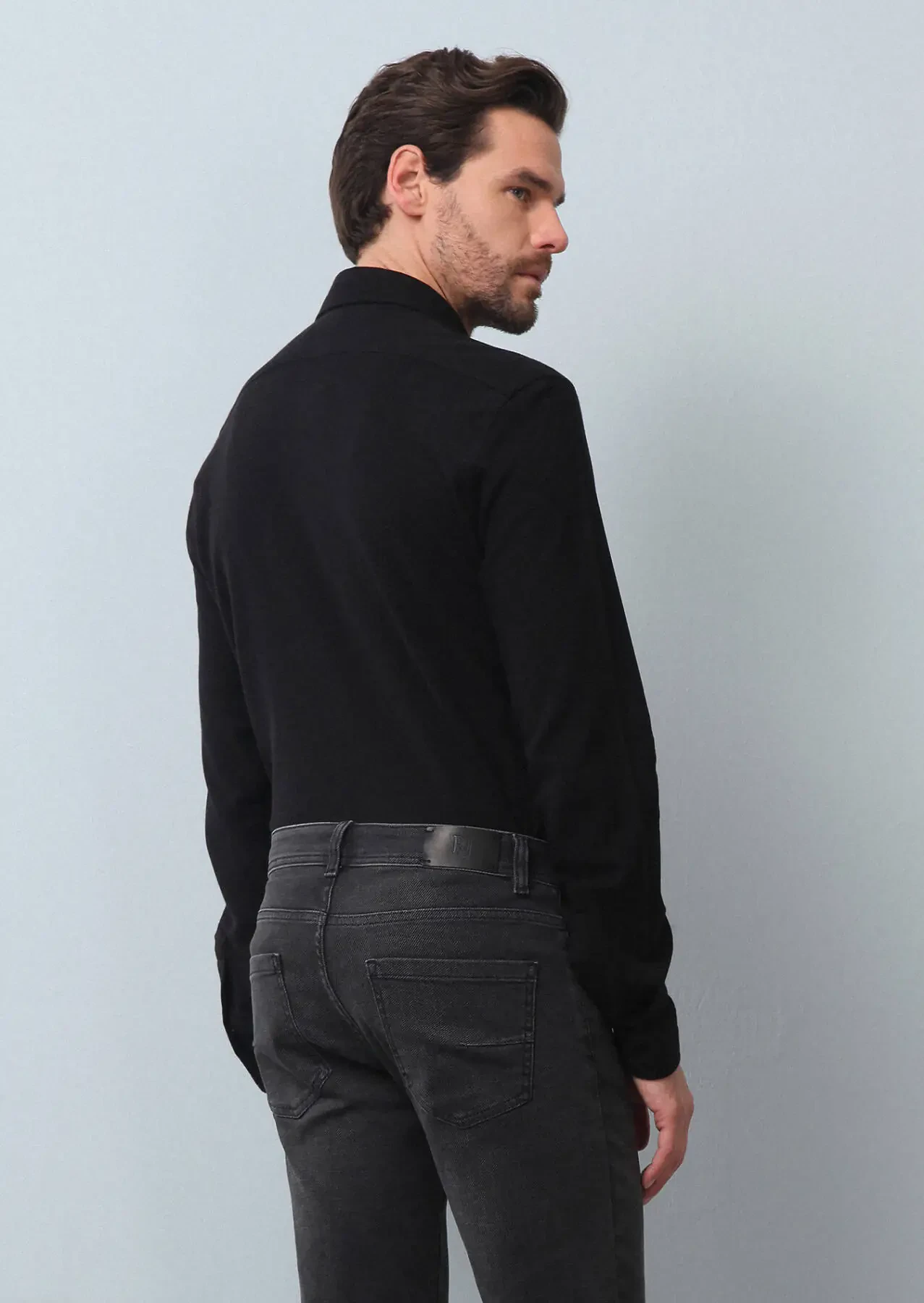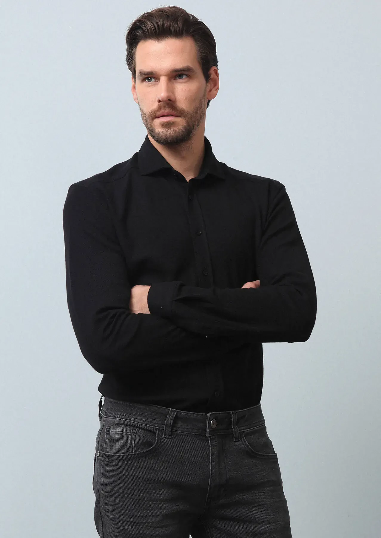 Siyah Düz Fitted Fit Casual %100 Pamuk Gömlek