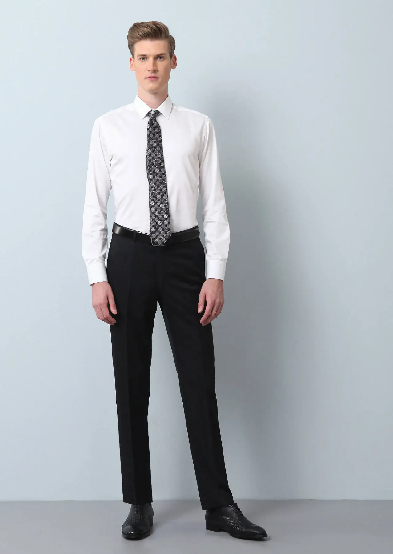 Siyah Düz Kumaş Regular Fit Klasik %100 Yün Pantolon