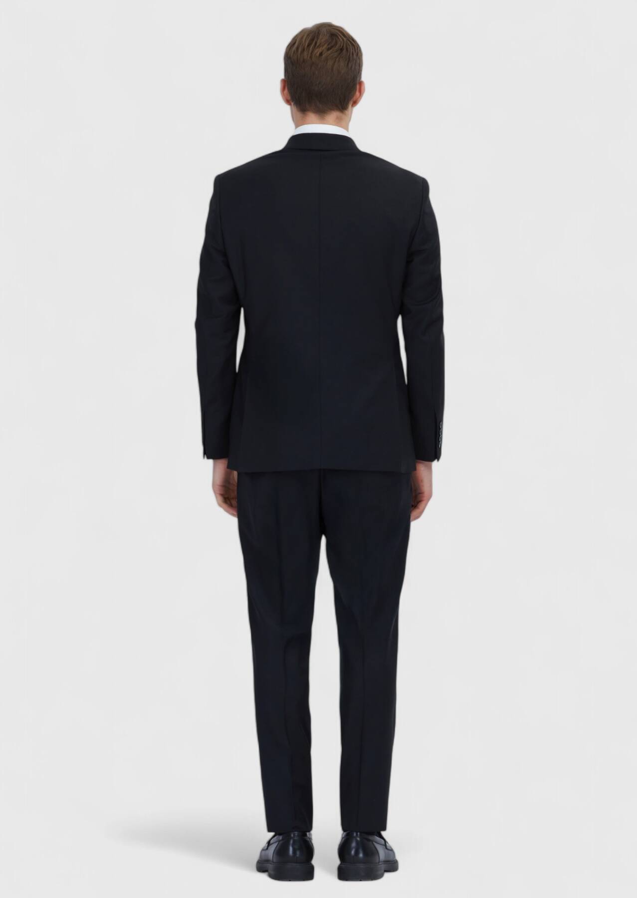 Siyah Düz Modern Fit Yün Karışımlı Takım Elbise