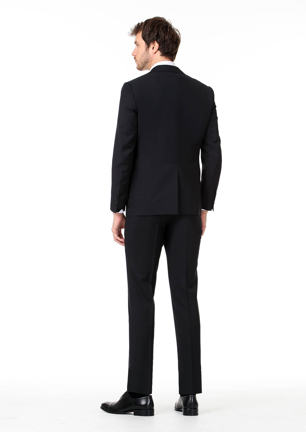 Siyah Düz Regular Fit %100 Yün Takım Elbise