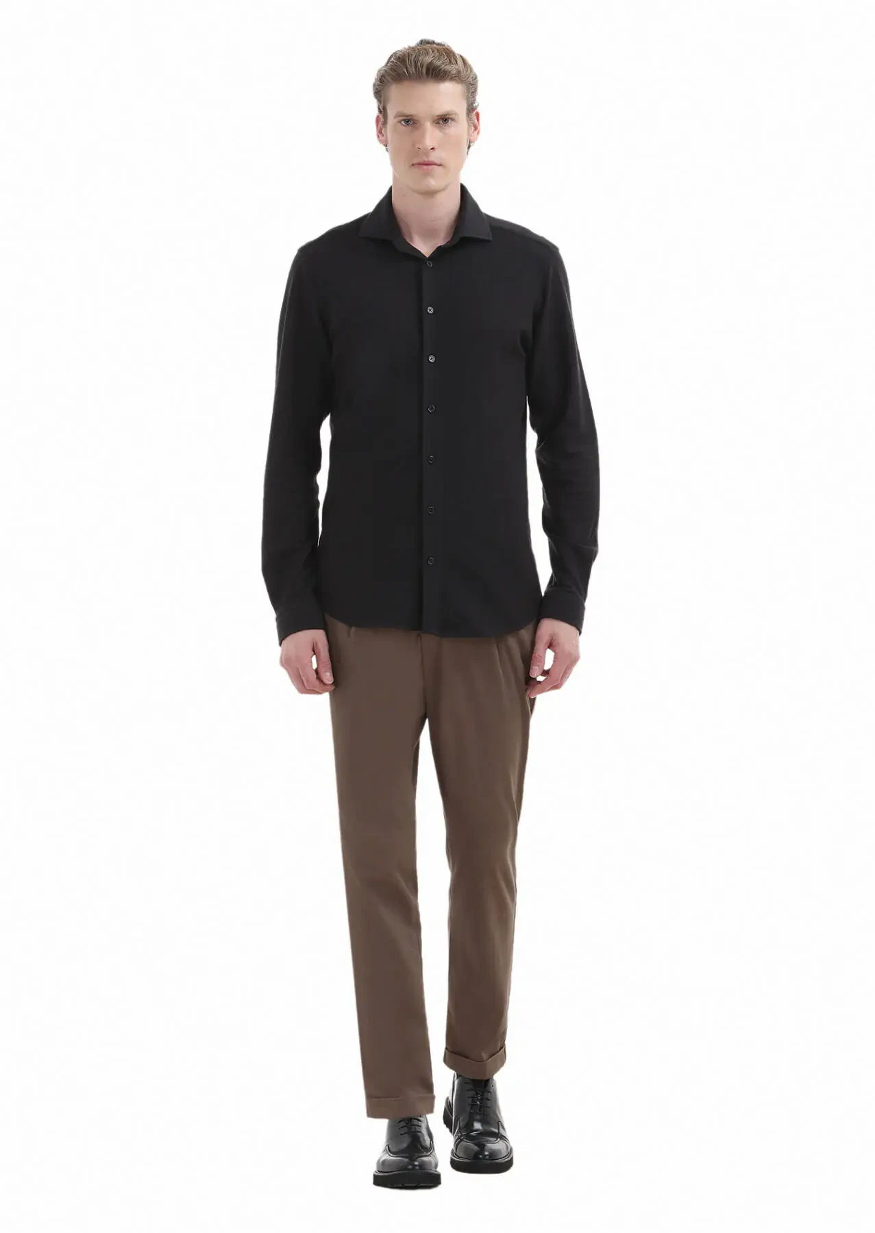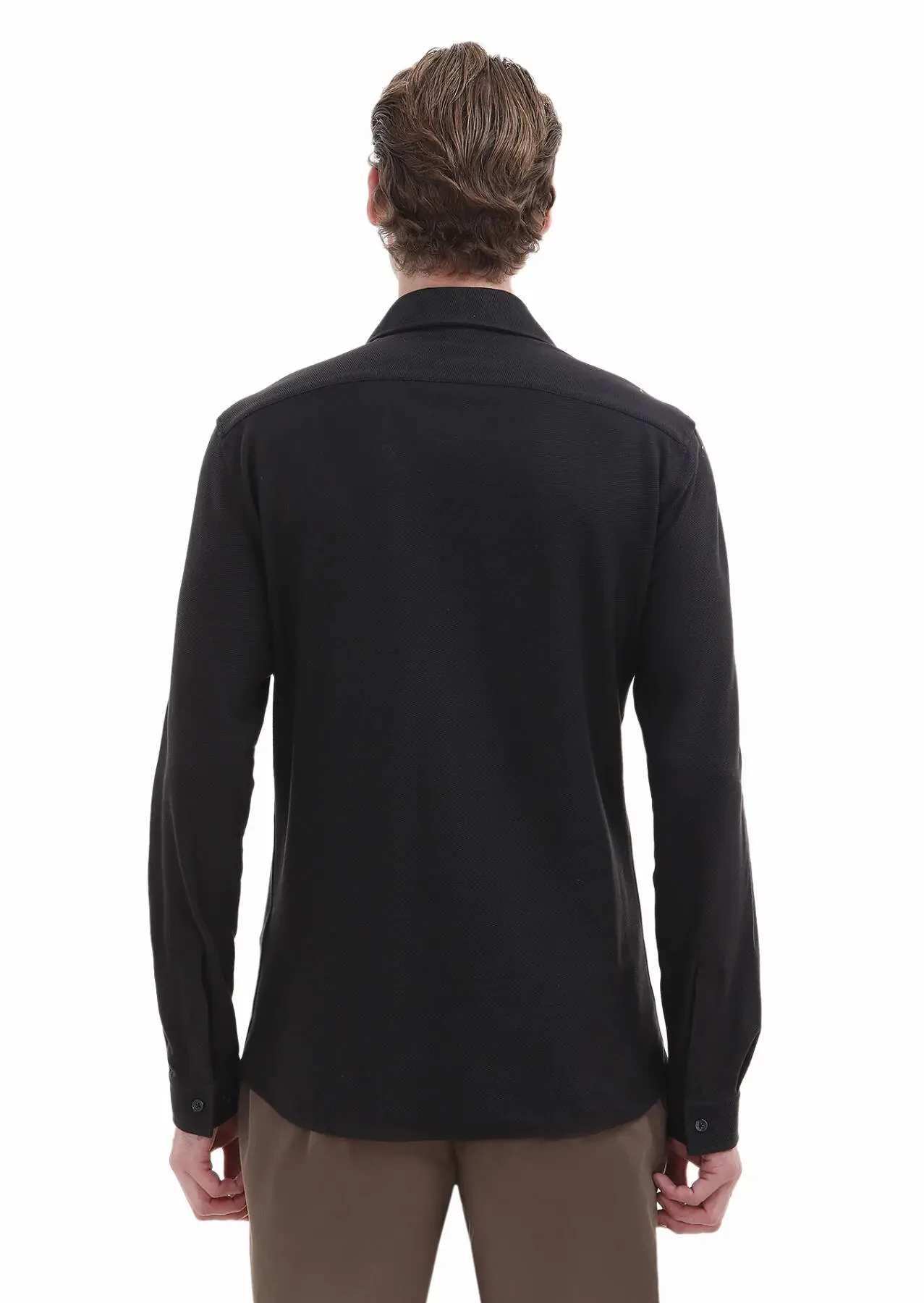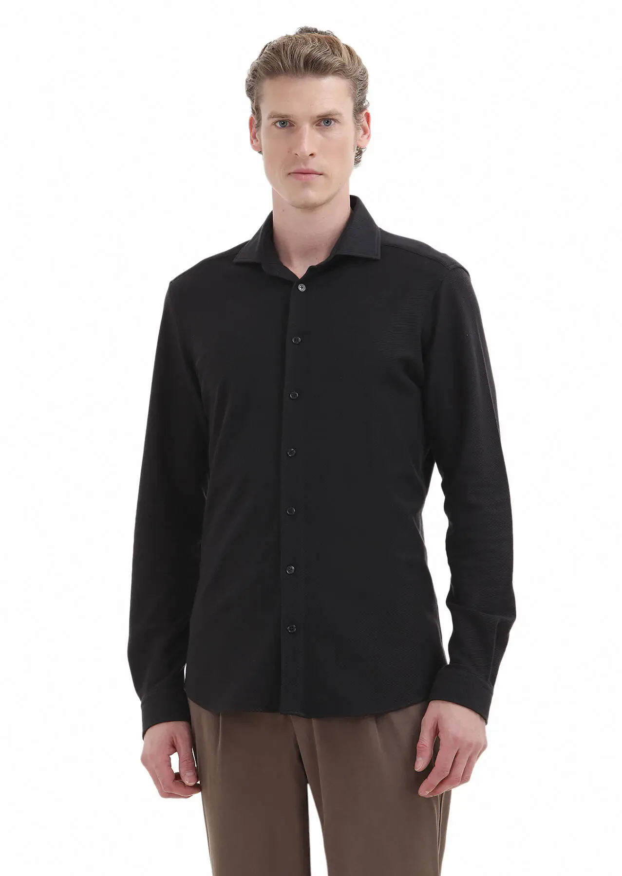 Siyah Düz Slim Fit Casual %100 Pamuk Gömlek