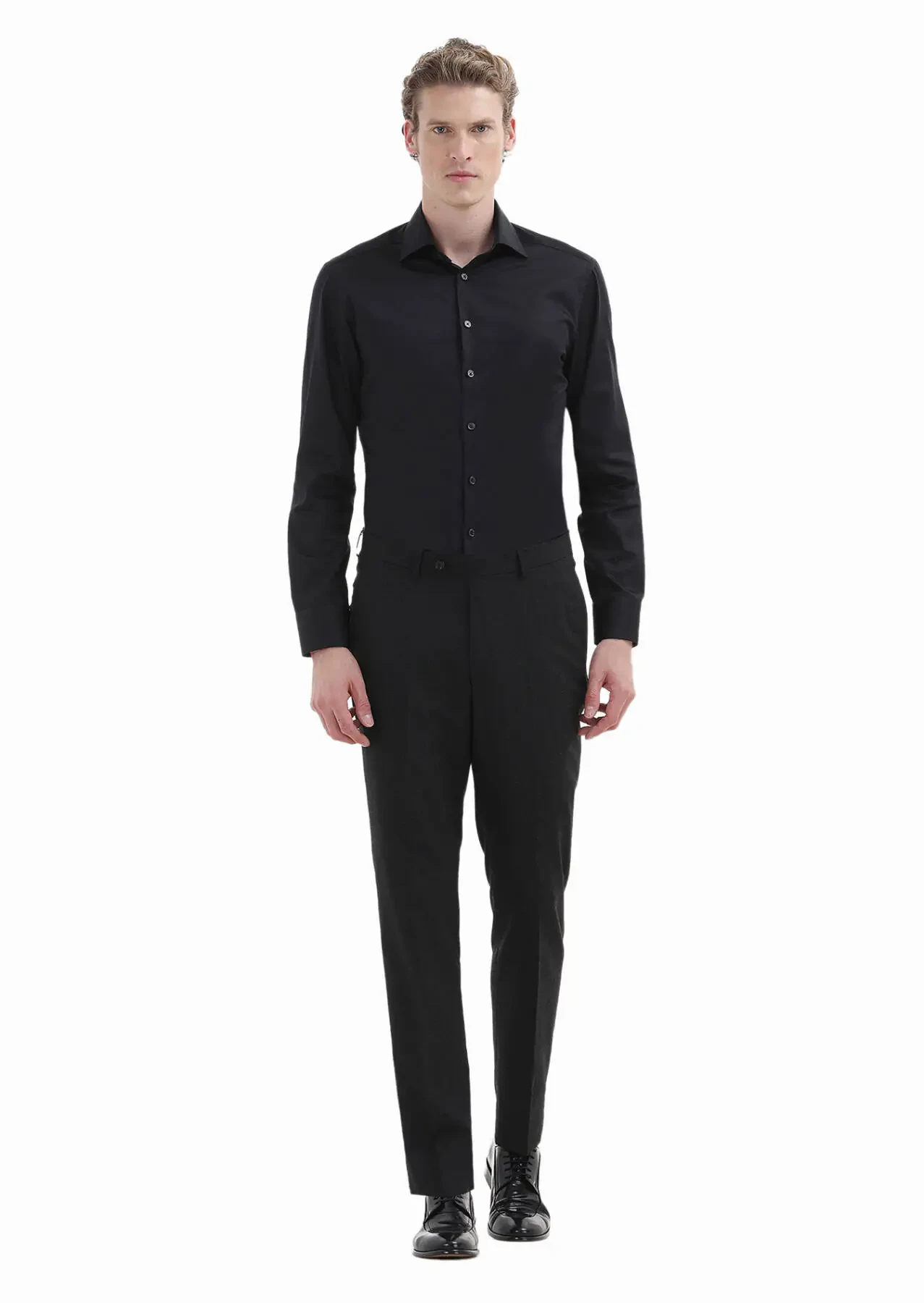 Siyah Düz Slim Fit Dokuma Klasik %100 Pamuk Gömlek