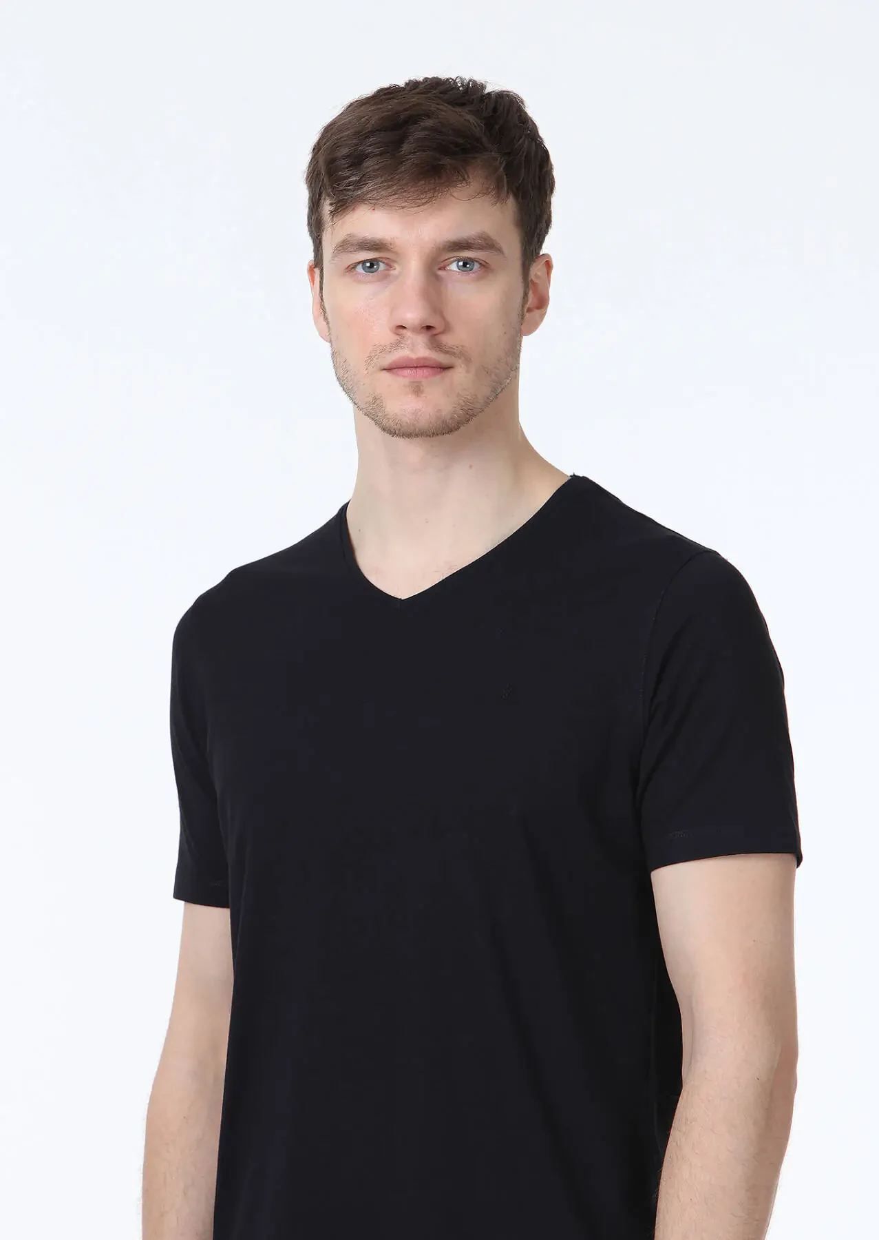 Black Plain V-Neck Cotton Blended T-Shirt