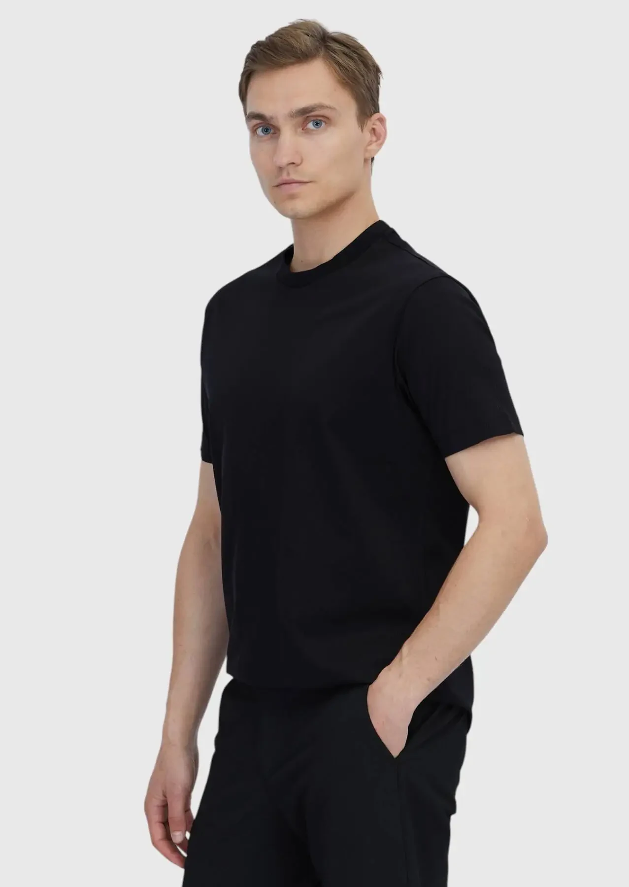 Siyah Jakarlı Bisiklet Yaka %100 Pamuk T-Shirt