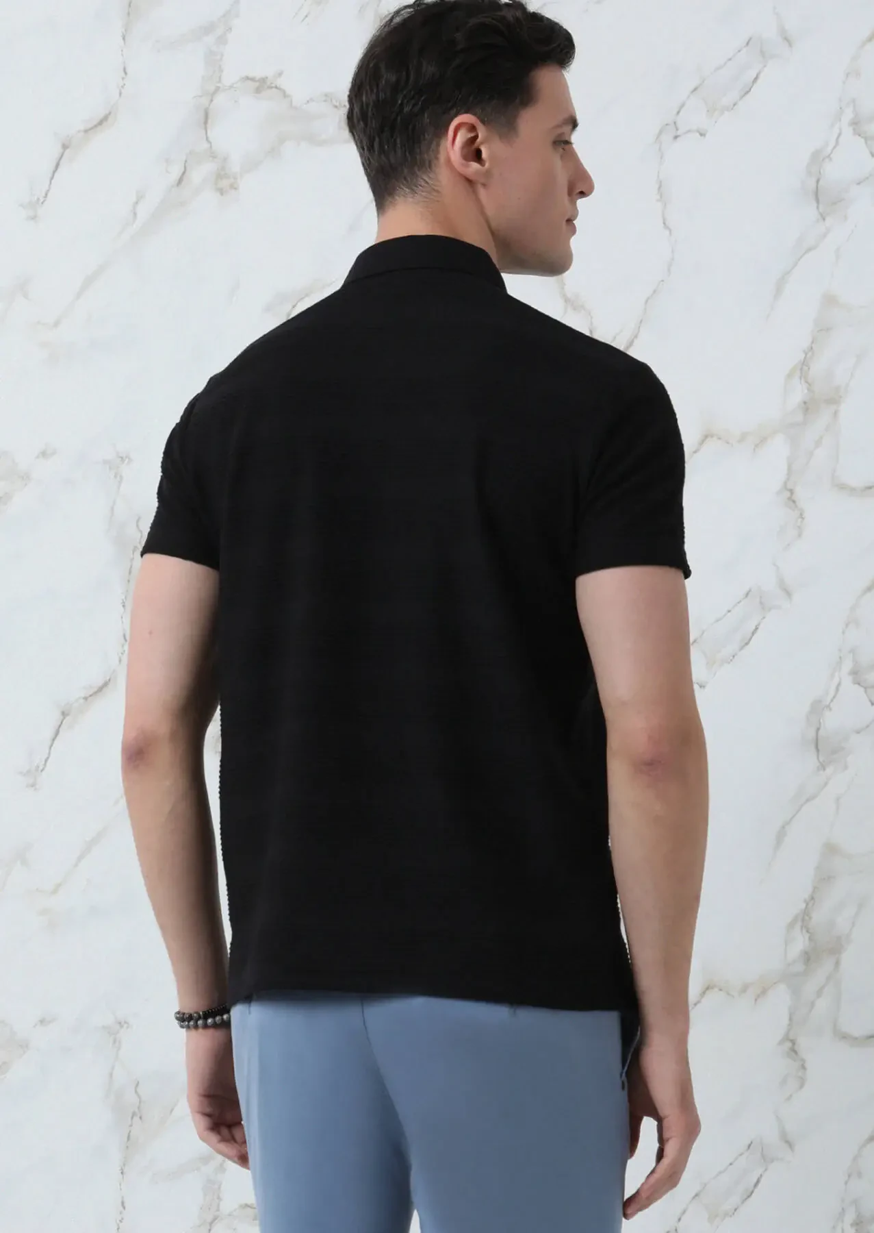 Siyah Jakarlı Polo Yaka %100 Pamuk T-Shirt