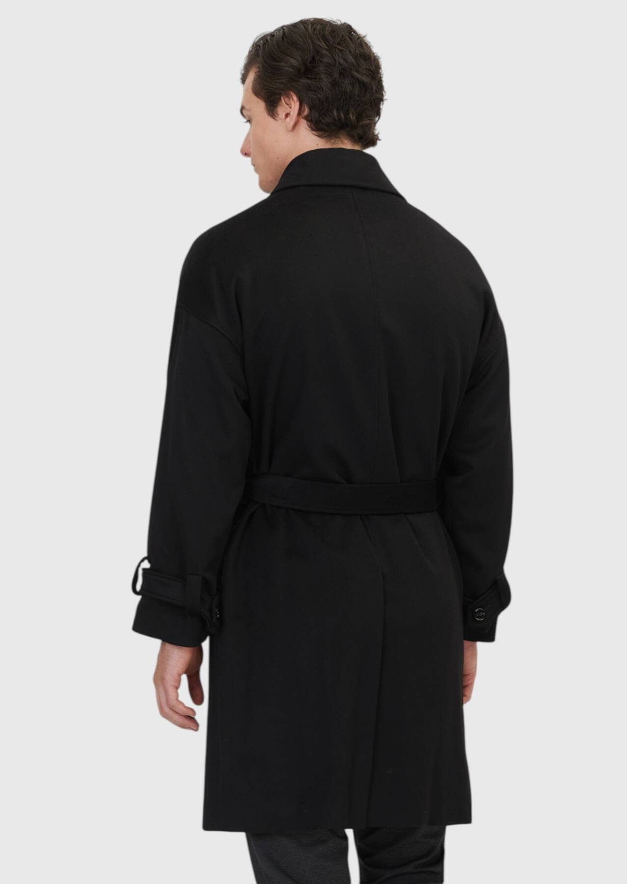 Siyah Oversize Fit Casual Dokuma Palto