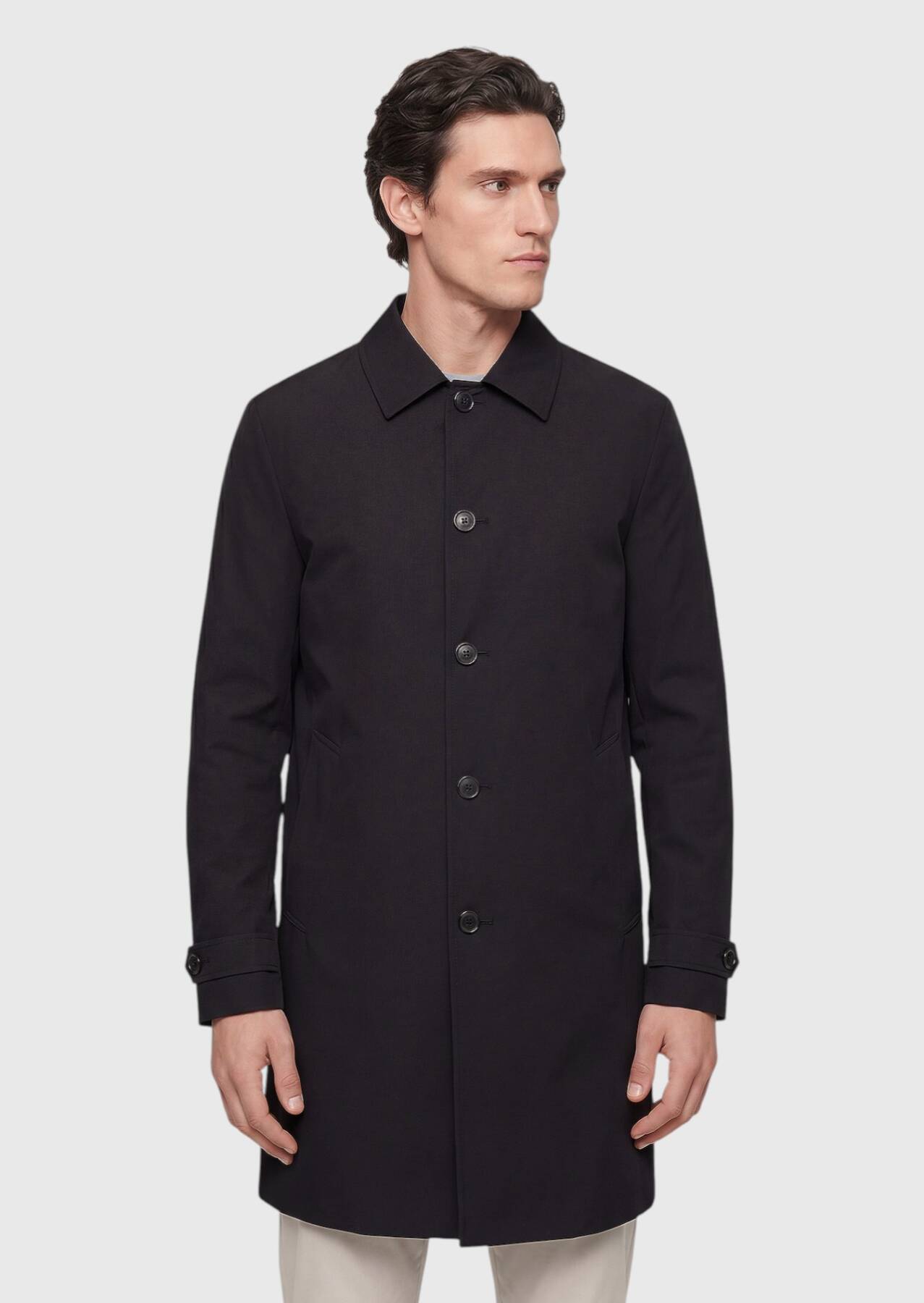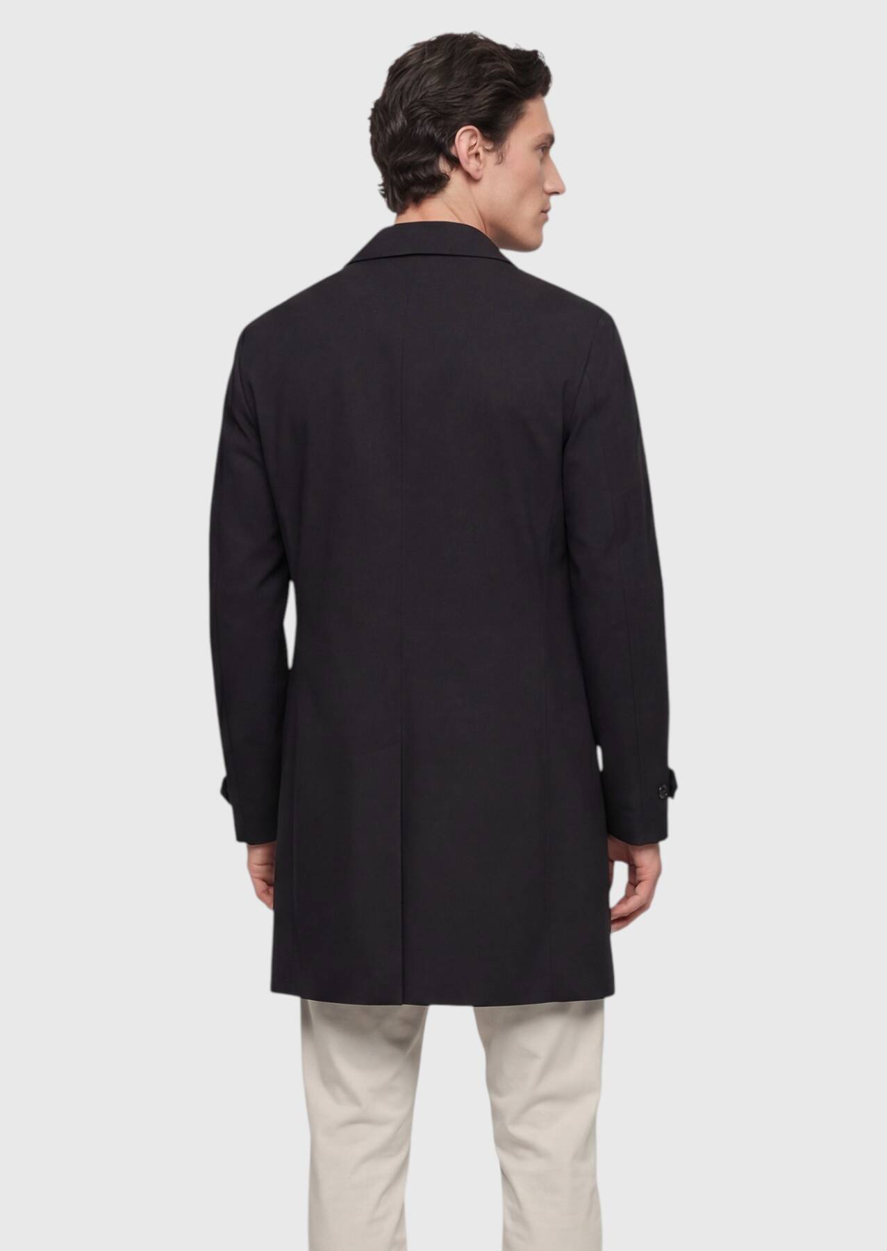 Siyah Regular Fit Gömlek Yaka Casual Teknik Pardösü