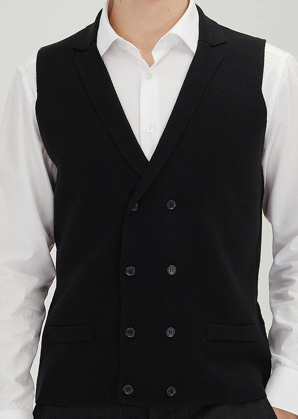 Siyah Regular Fit Kelebek Yaka Casual Örme Triko Yelek
