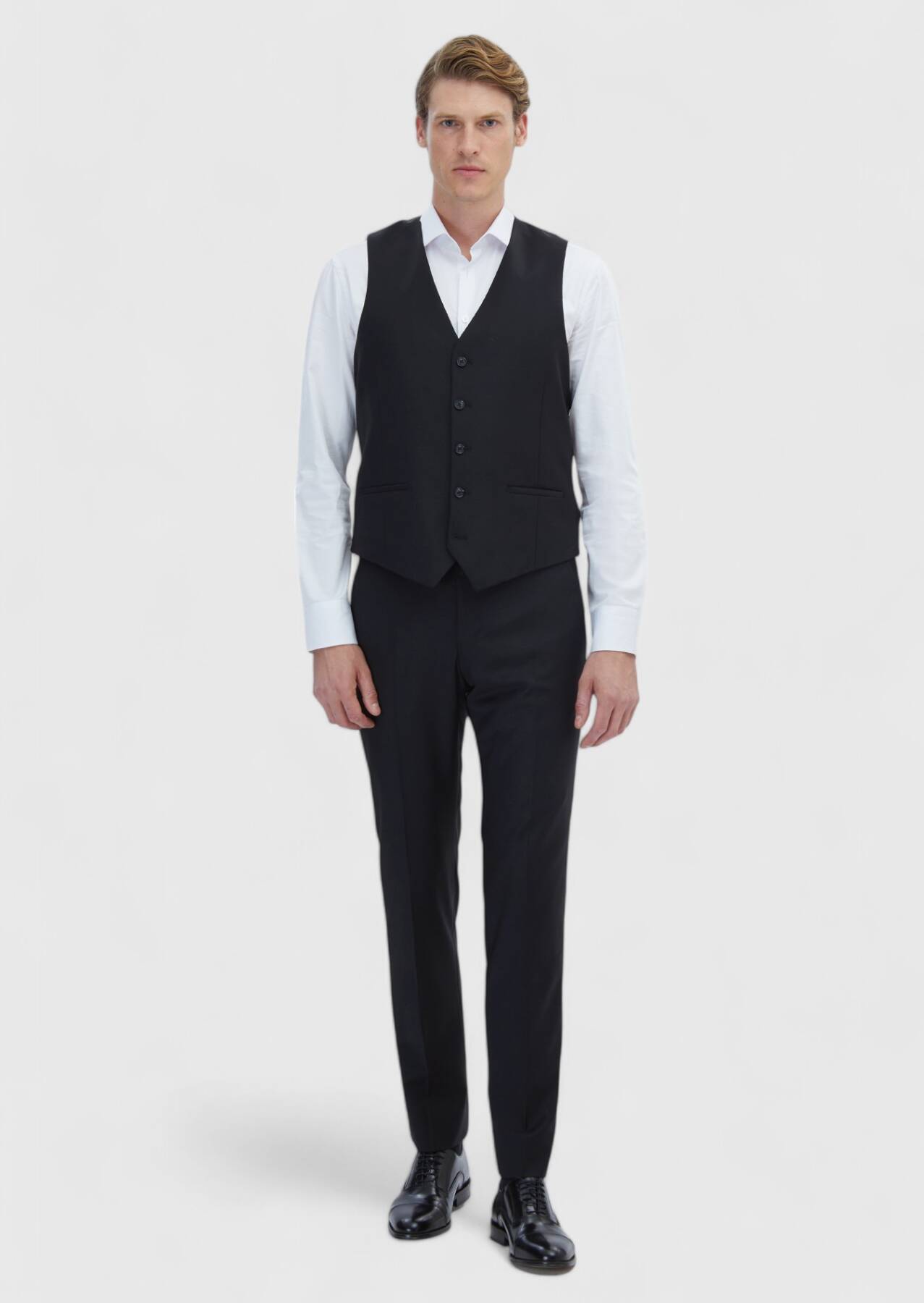 Siyah Slim Fit Kelebek Yaka Klasik Yelek