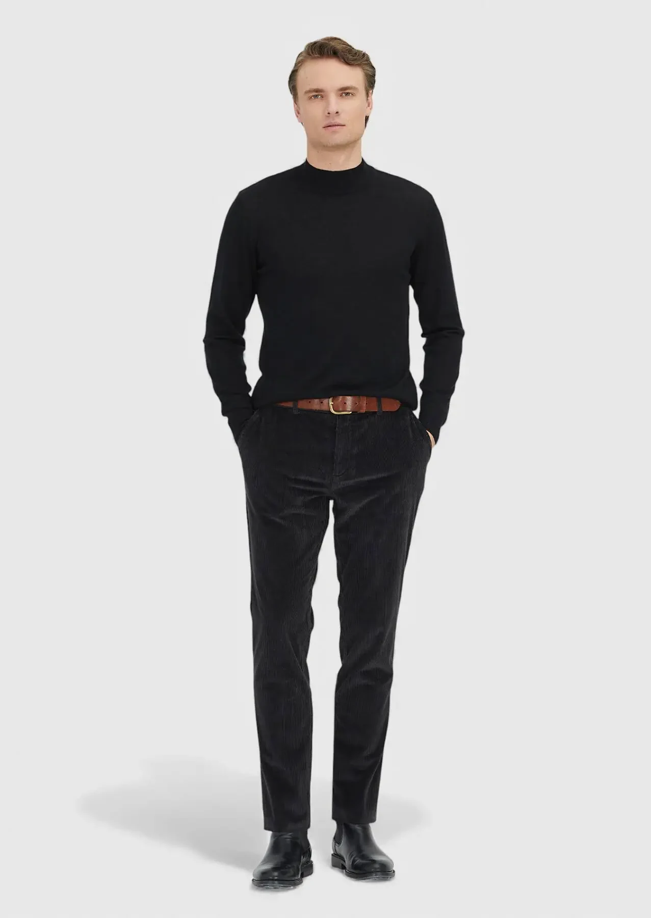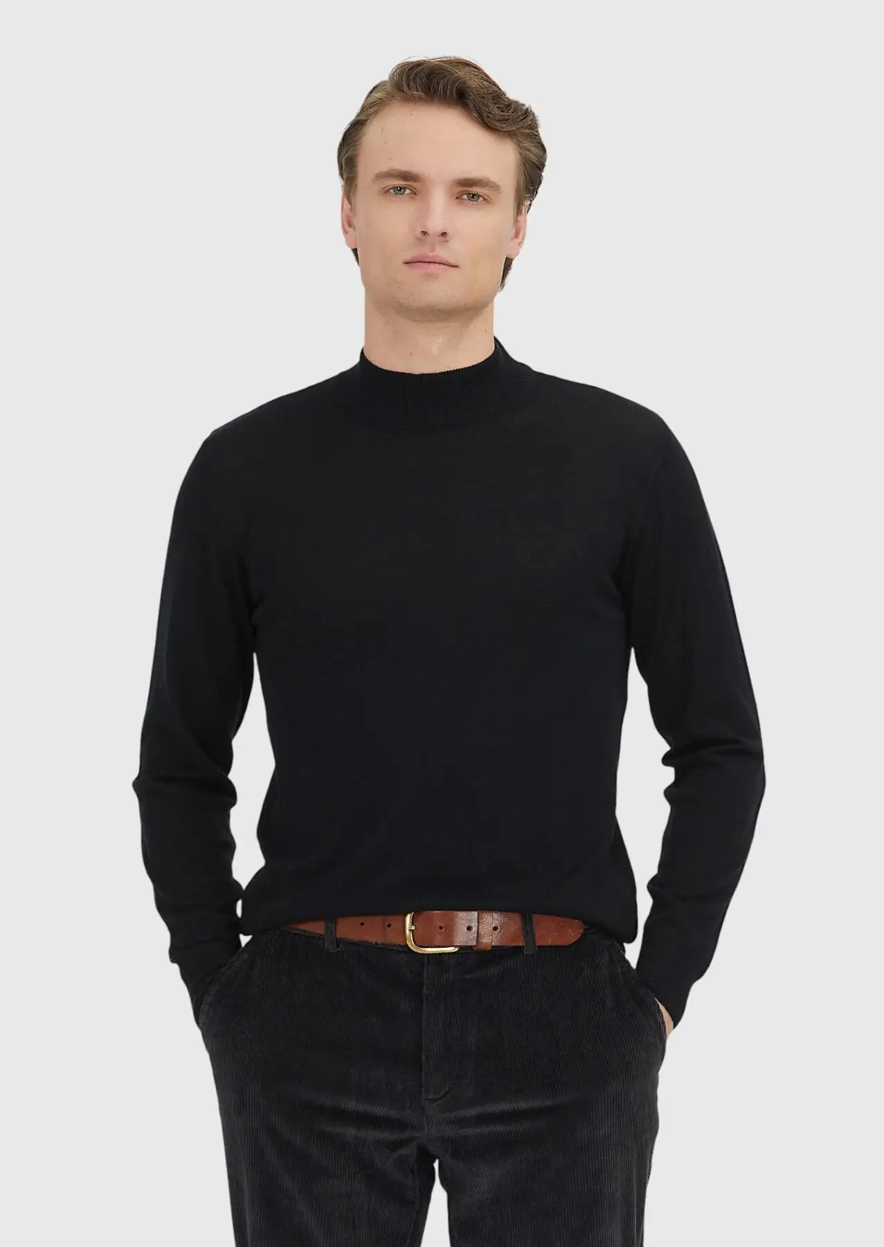 Siyah Yarım Balıkçı Yaka Düz Örgü %100 Yün Triko Kazak