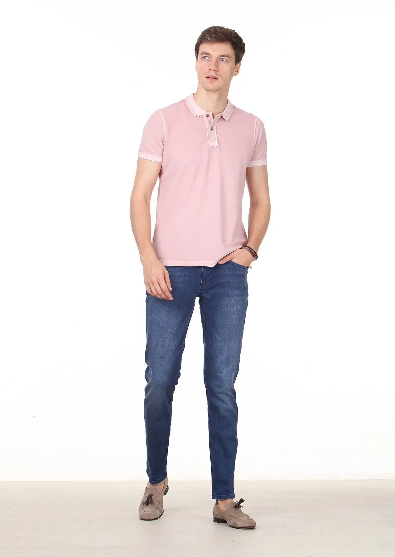 Salmon Plain Polo Neck 100% Cotton T-Shirt