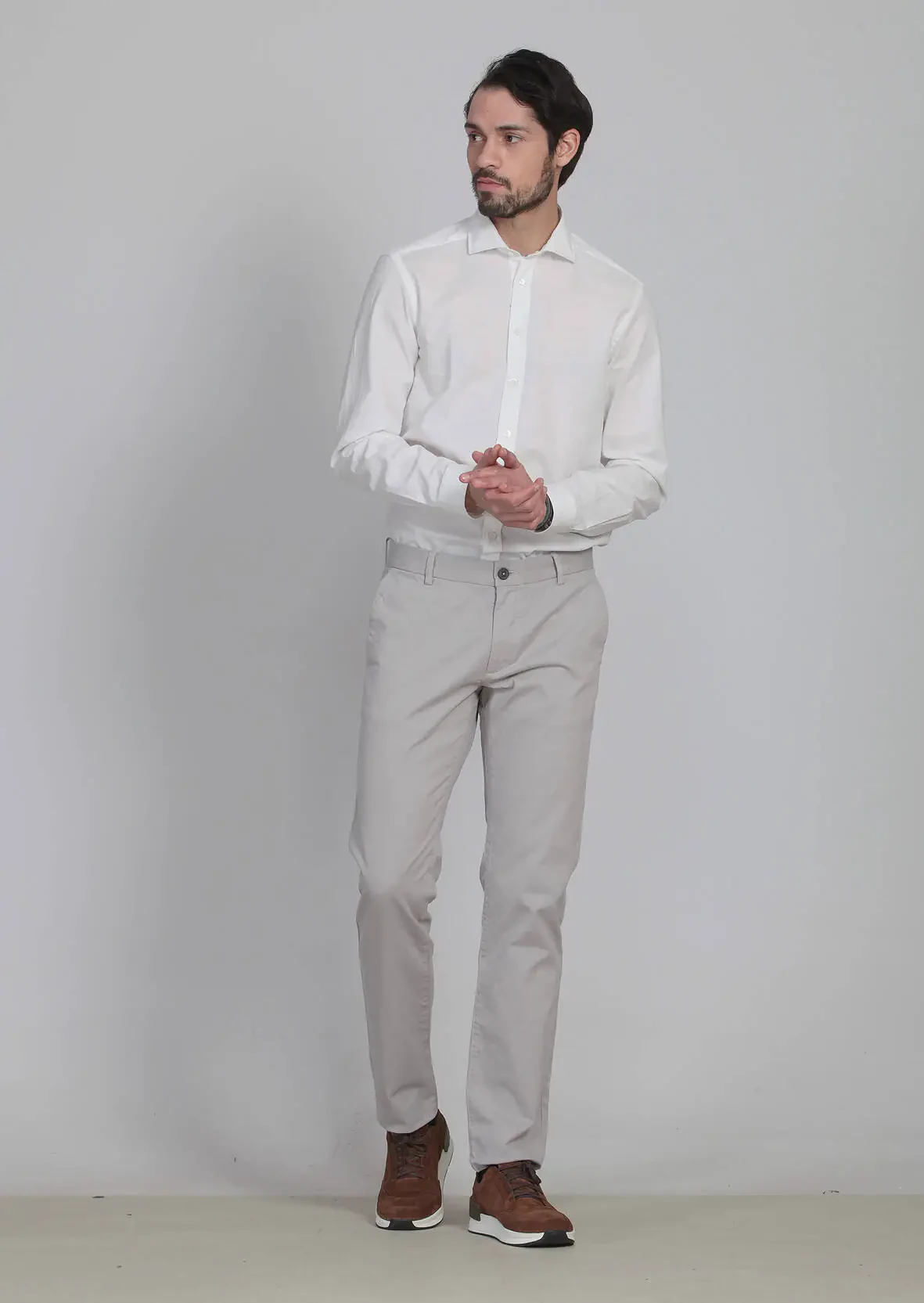 Stone Weaving Regular Fit Casual Cotton Blended Trousers