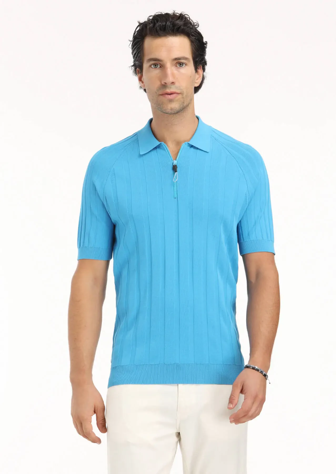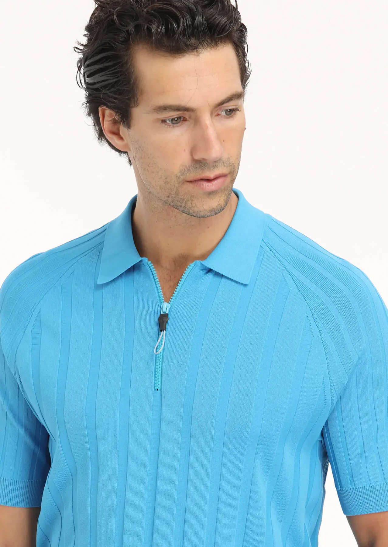 Turkuaz Polo Yaka Jakarlı Triko