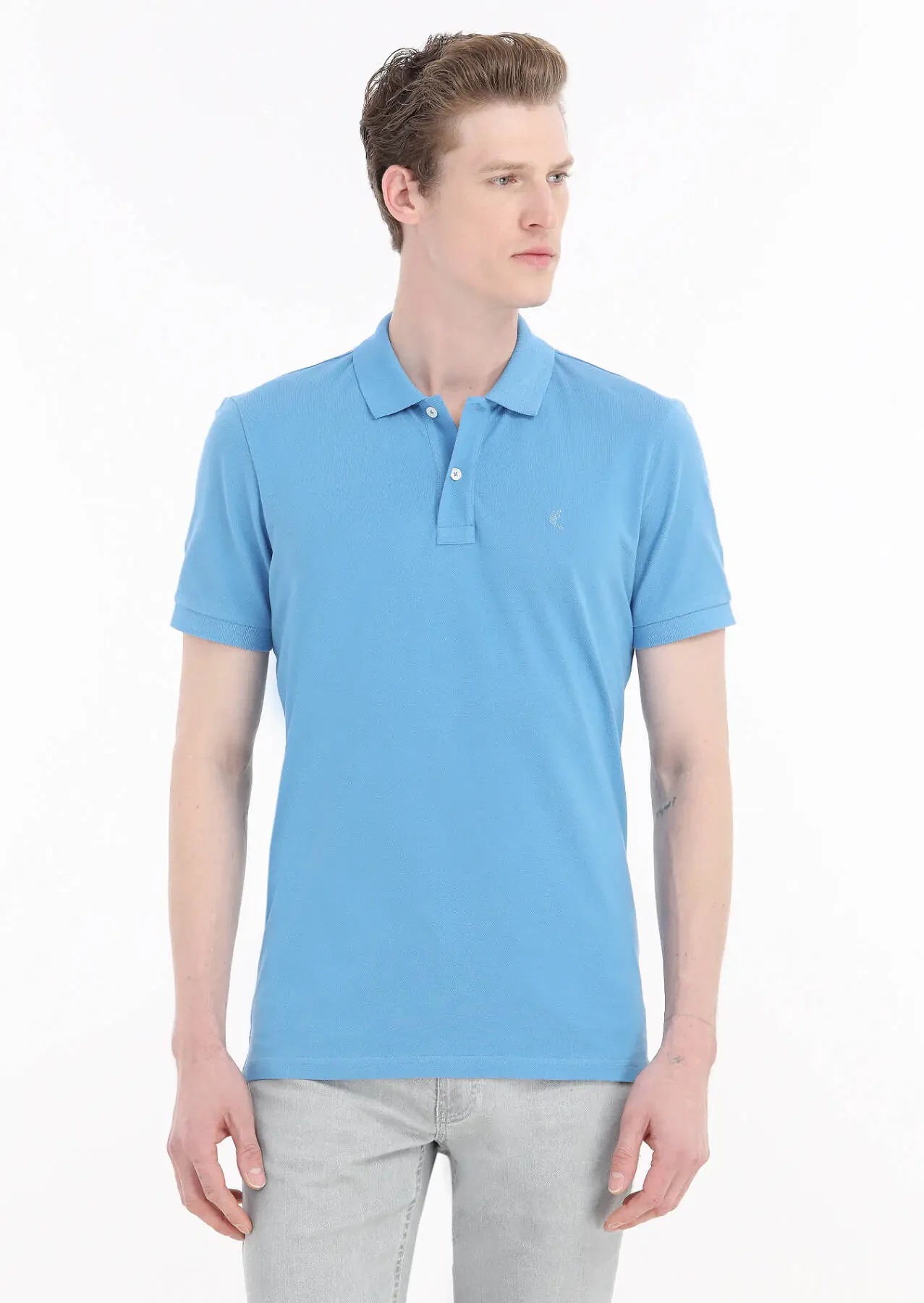 Turquoise Printed Polo Neck 100% Cotton T-Shirt