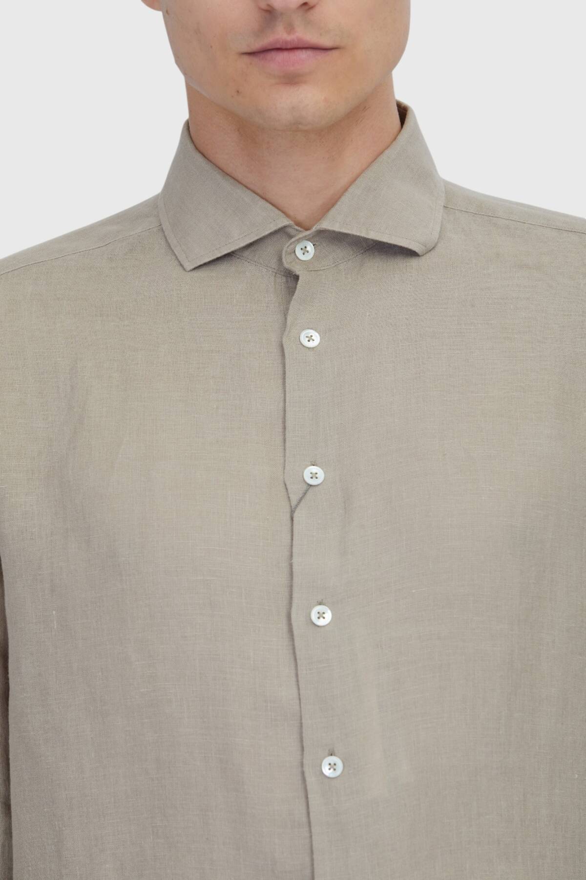 Vizon Düz Casual Fit Uzun Dokuma Casual %100 Keten Gömlek
