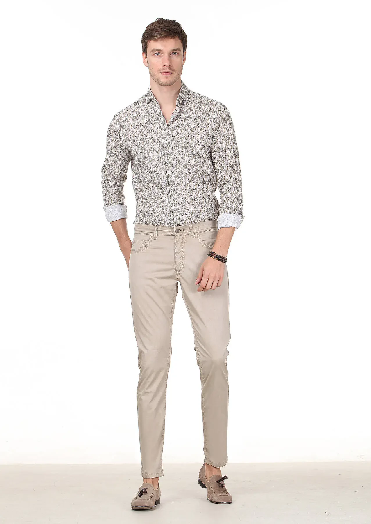 Vizon Düz Dokuma Slim Fit Casual Pamuk Karışımlı Pantolon
