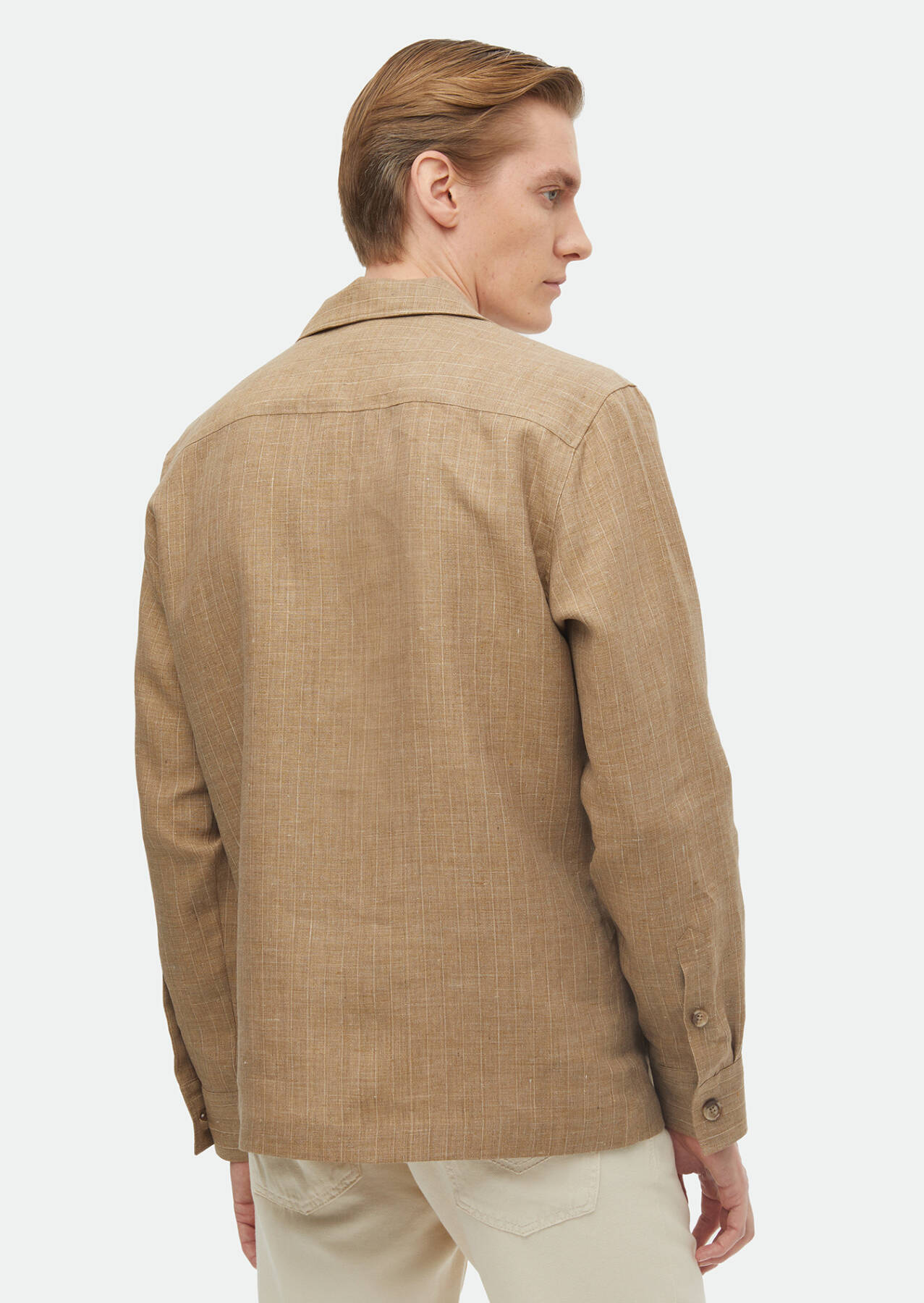 Vizon Düz Regular Fit Uzun Dokuma %100 Keten Overshırt