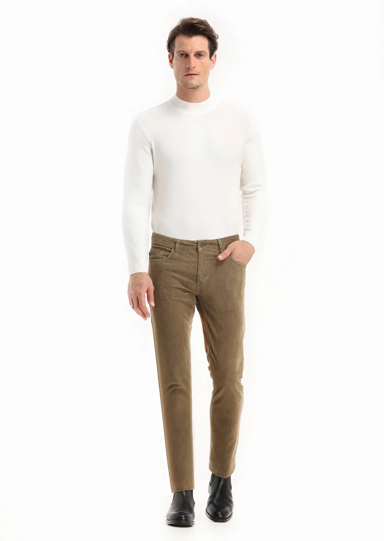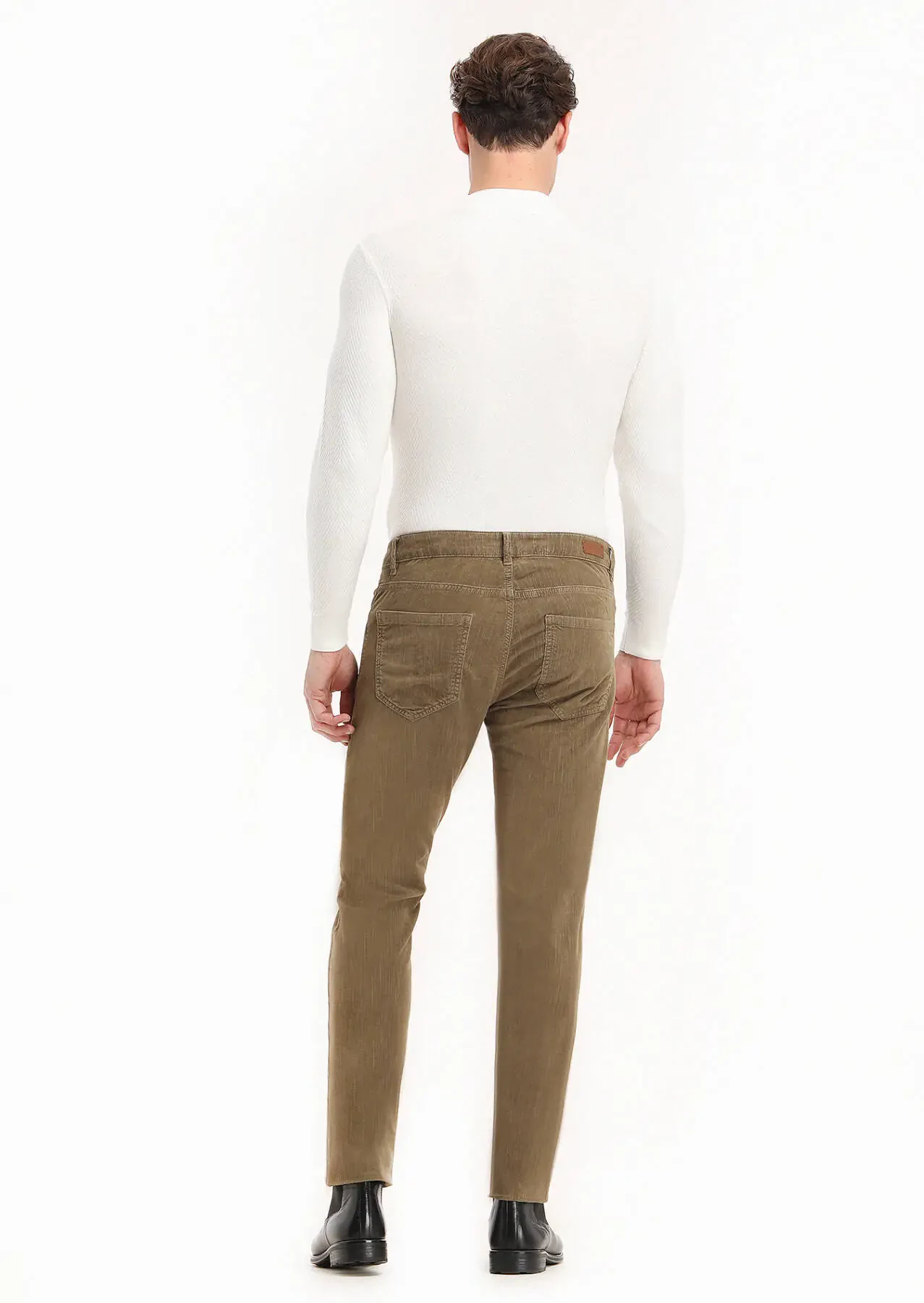 Vizon Fitilli Dokuma Slim Fit Kadife Casual Pamuk Karışımlı Pantolon