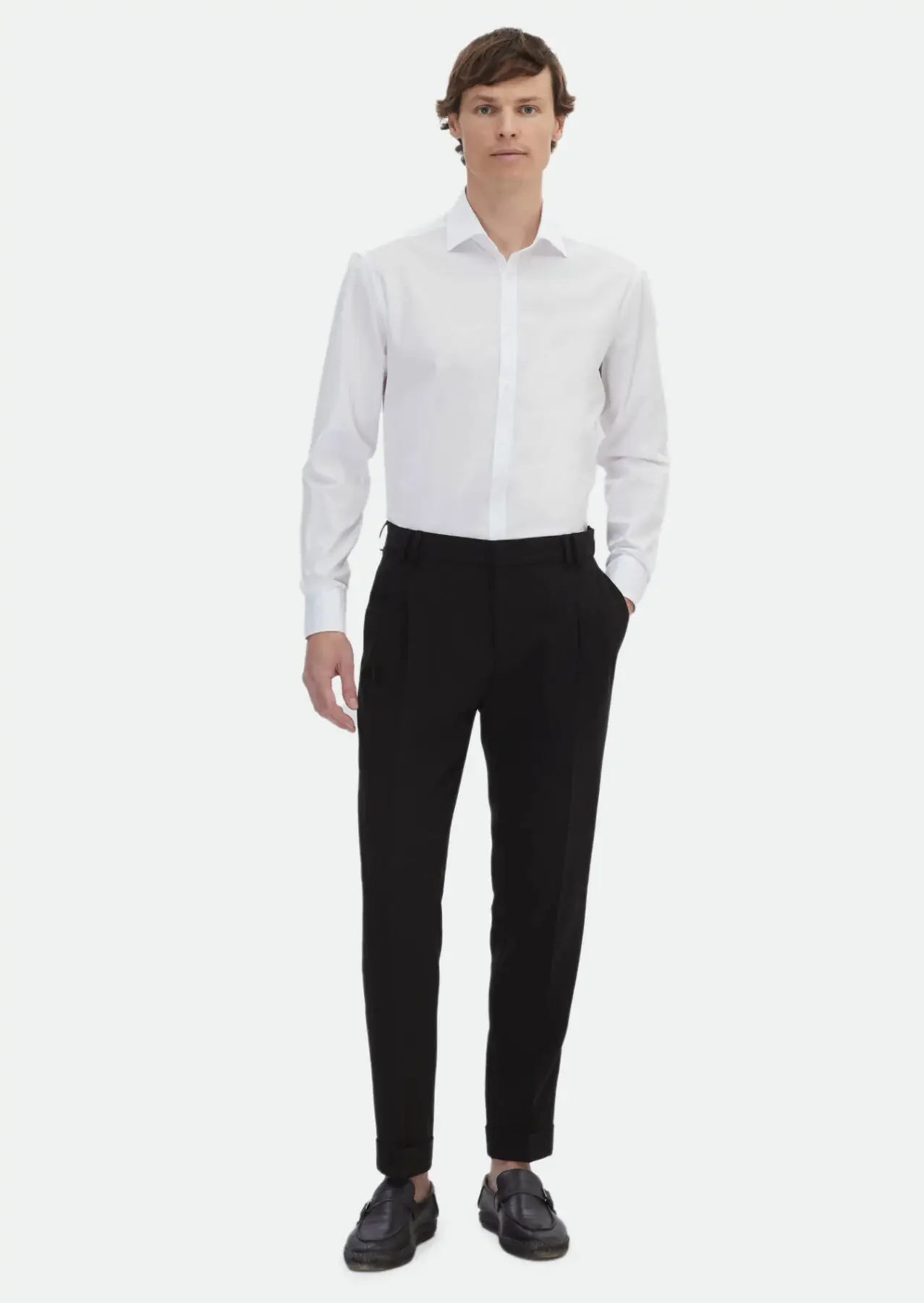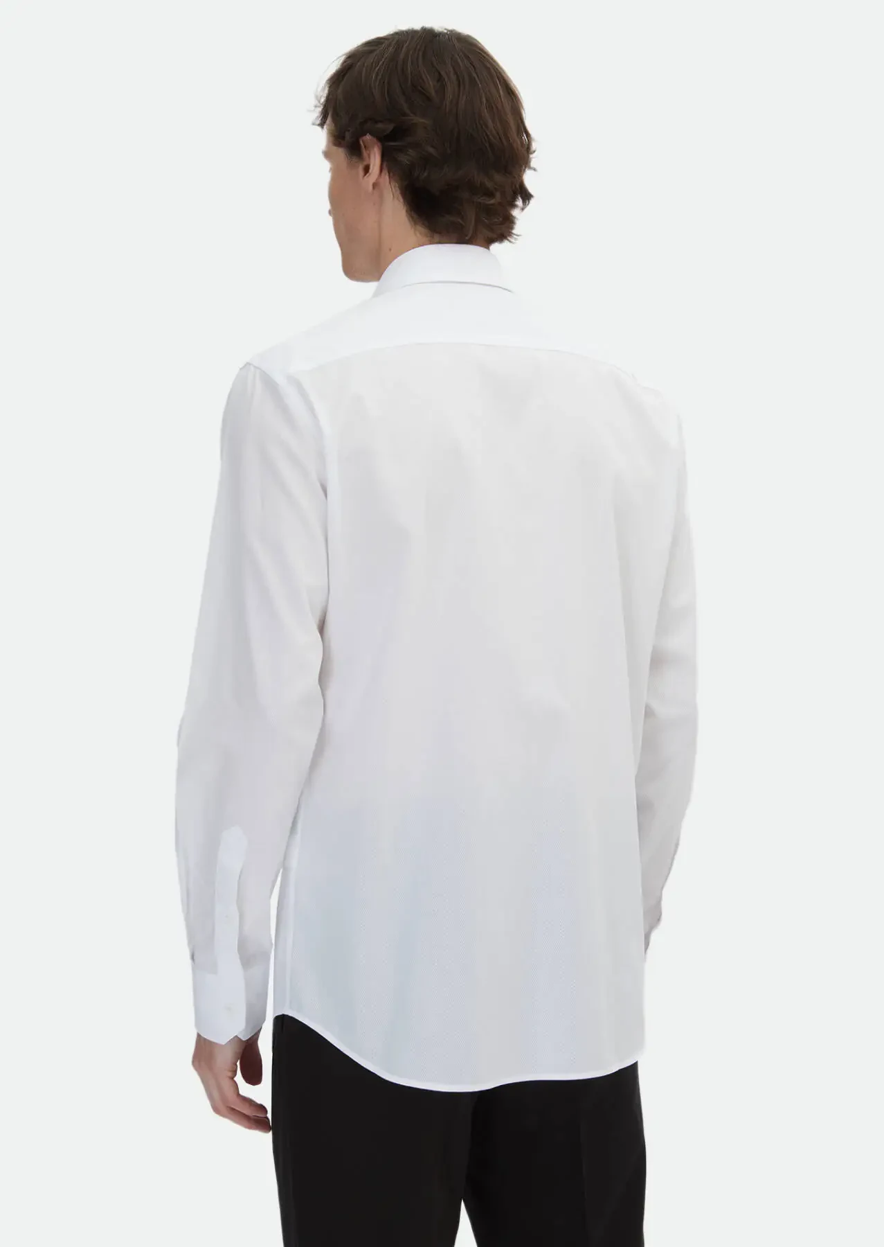White Patterned Regular Fit Weaving Classical 100% Cotton Shirt