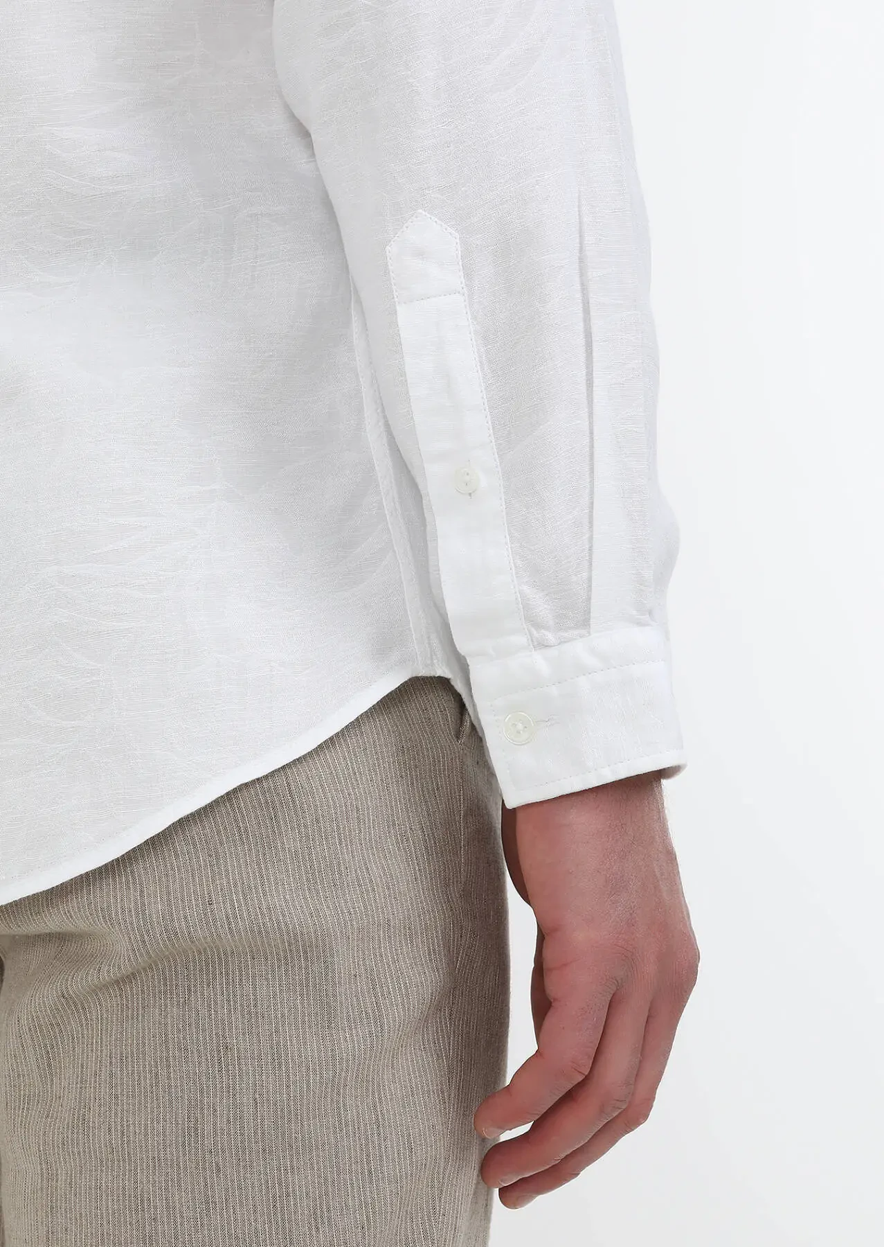 White Patterned Slim Fit Weaving Casual Cotton Blended Shirt