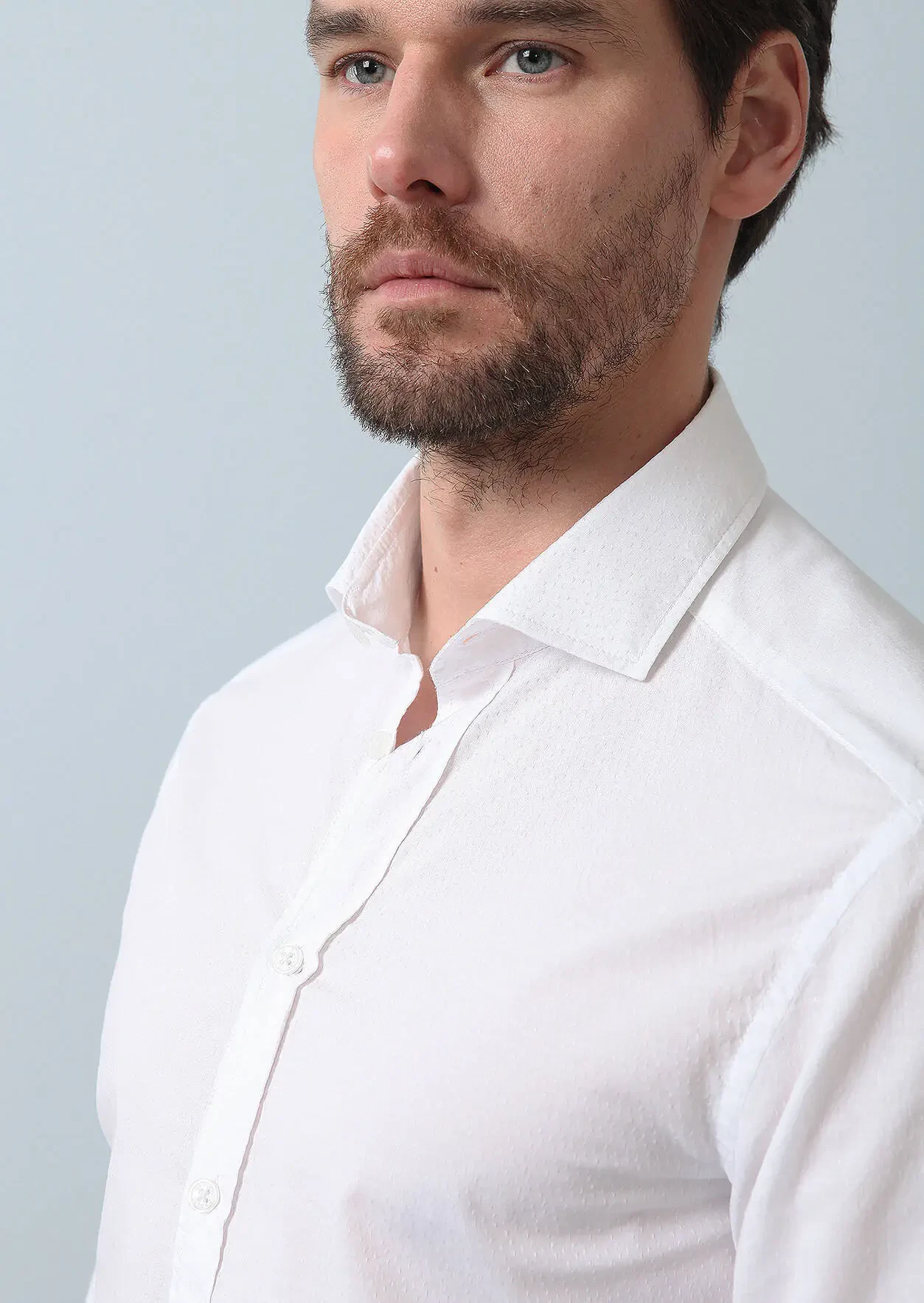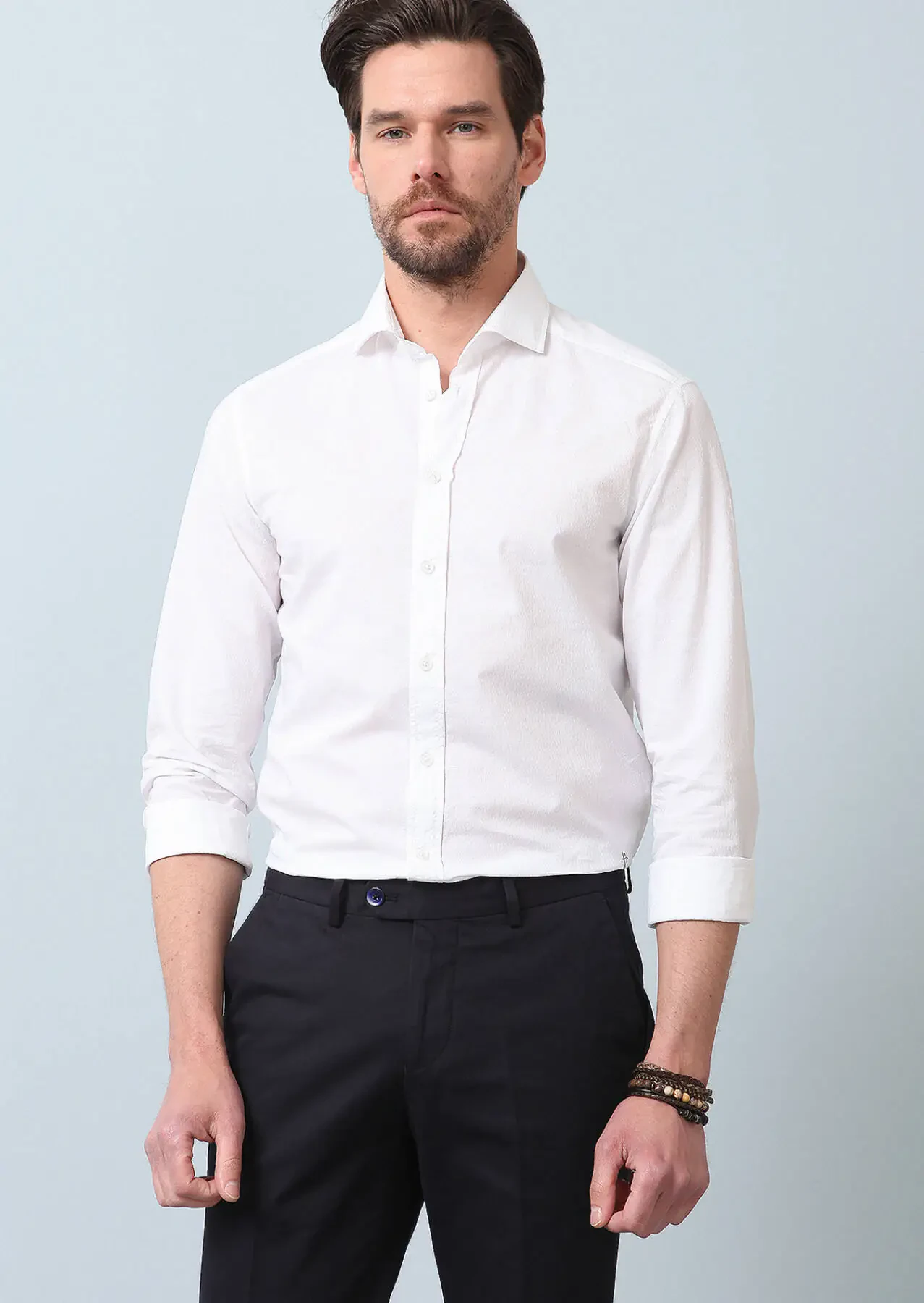 White Patterned Slim Fit Weaving Casual Cotton Blended Shirt