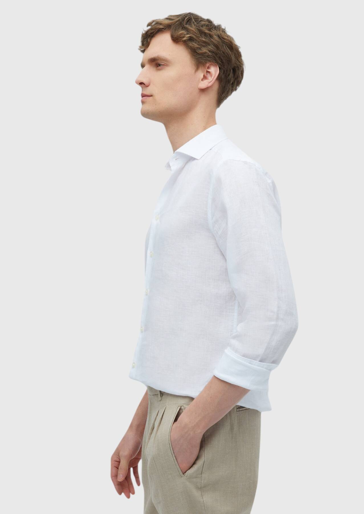 White Plain Casual Fit Long Weaving Casual 100% Linen Shirt