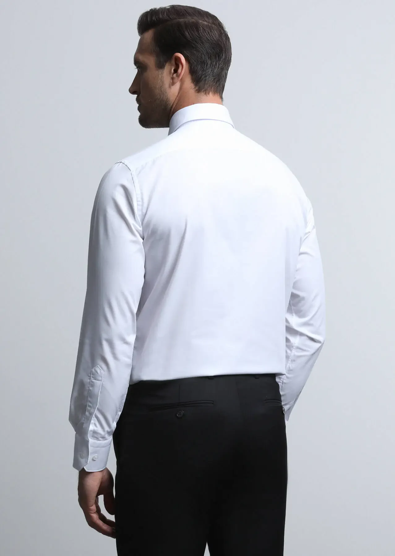 White Plain Regular Fit Weaving Classical Cotton Blended Shirt