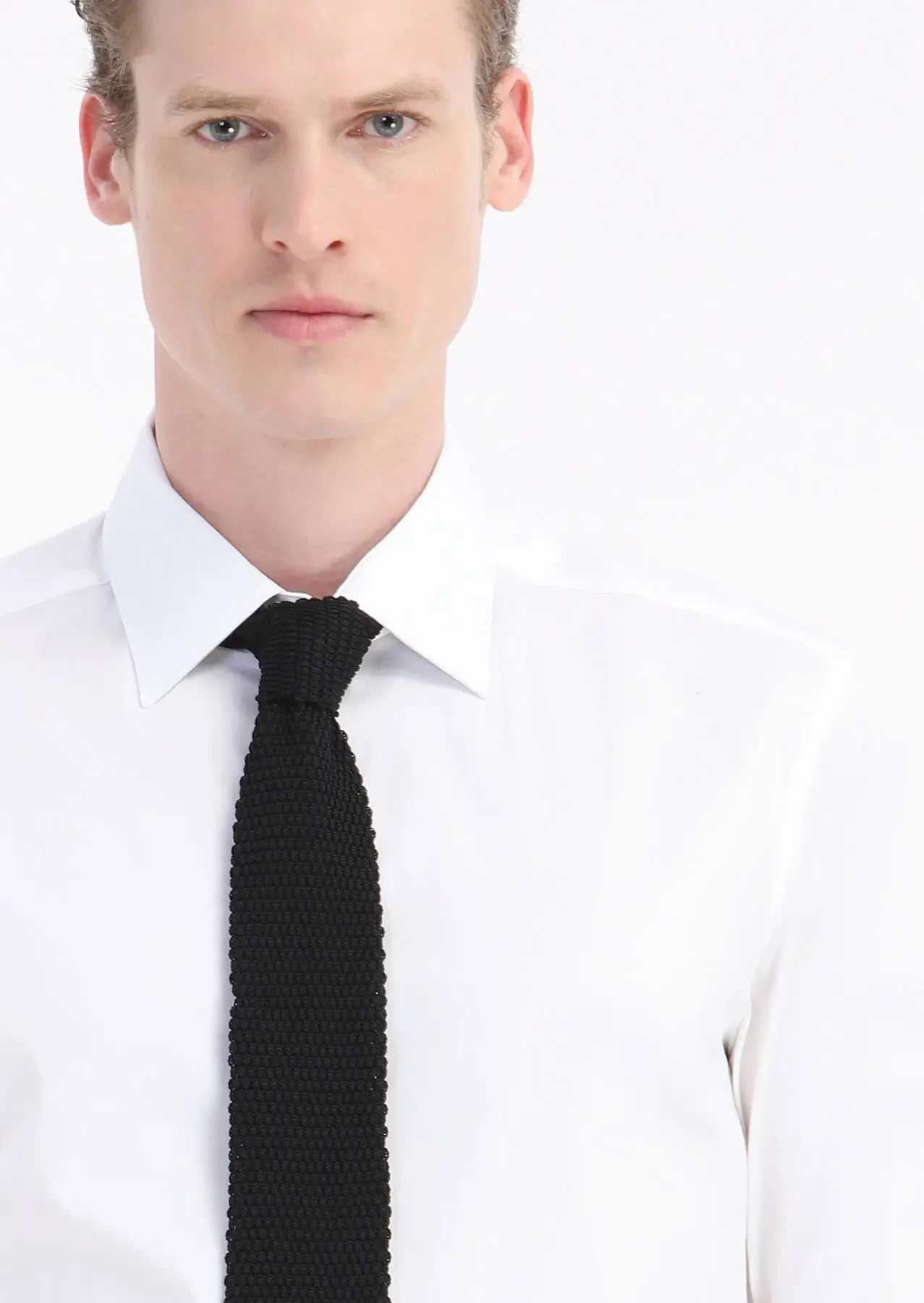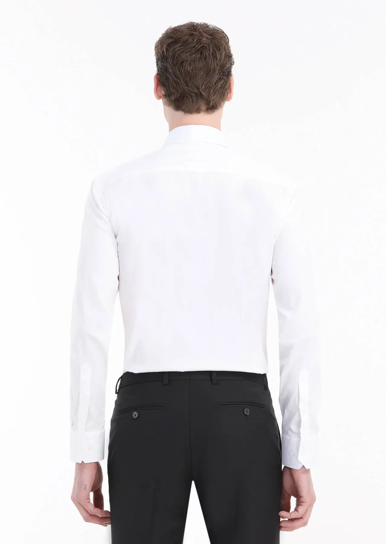 White Plain Regular Fit Weaving Classical Cotton Blended Shirt