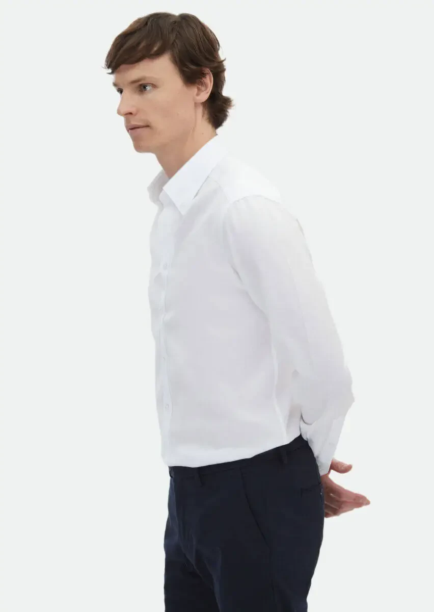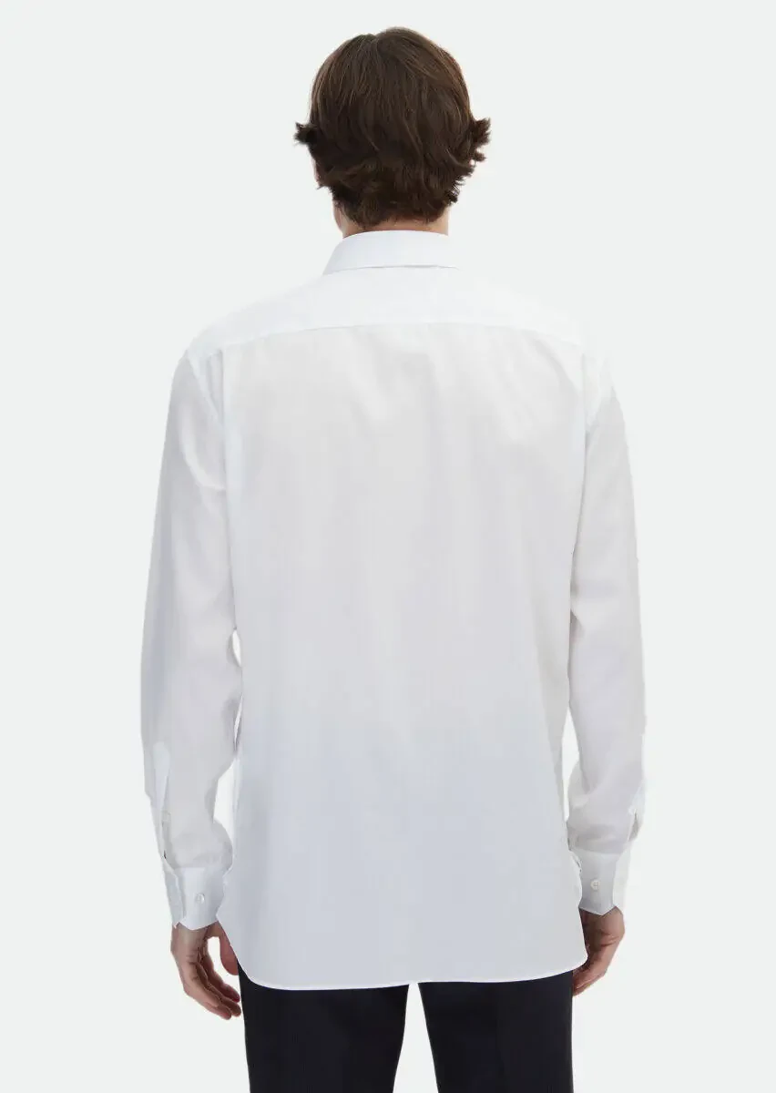 White Plain Regular Fit Weaving Classical Cotton Blended Shirt