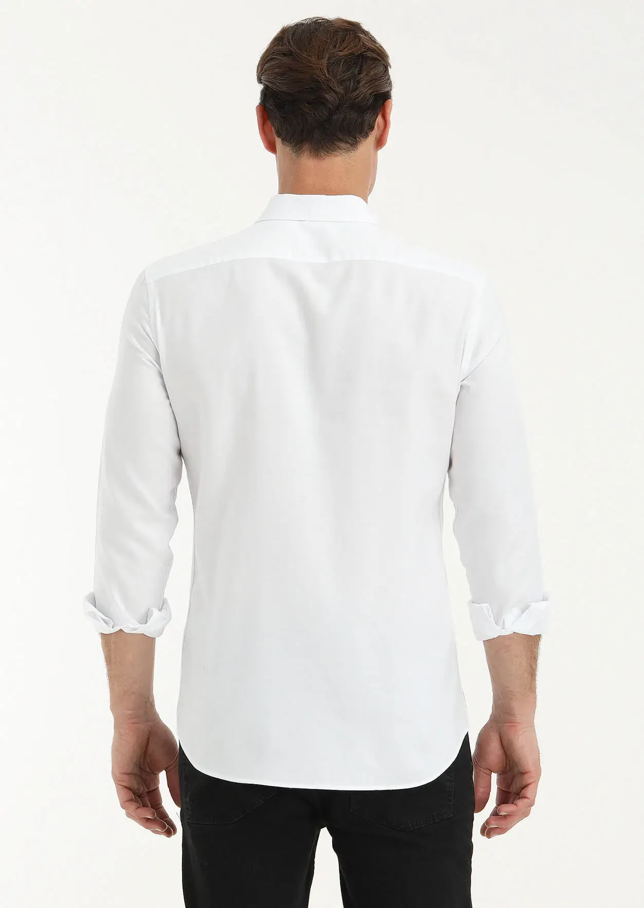 White Plain Slim Fit Weaving Casual 100% Cotton Shirt