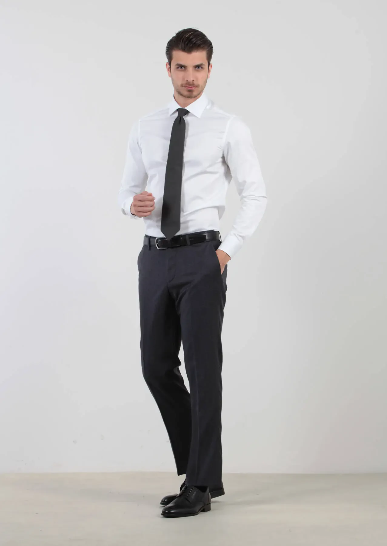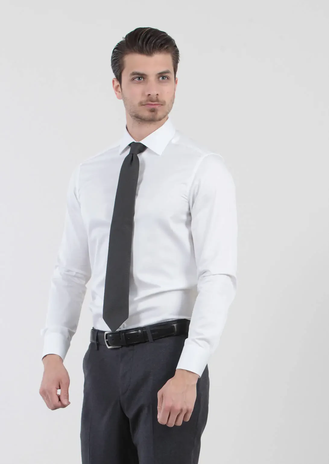 White Plain Slim Fit Weaving Classical 100% Cotton Shirt