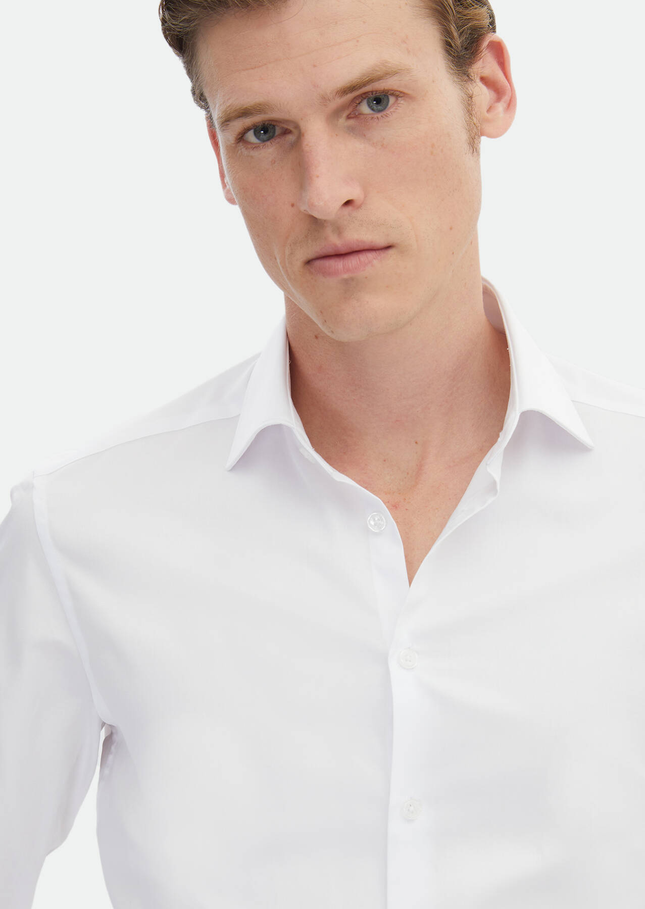 White Plain Slim Fit Weaving Classical 100% Cotton Shirt