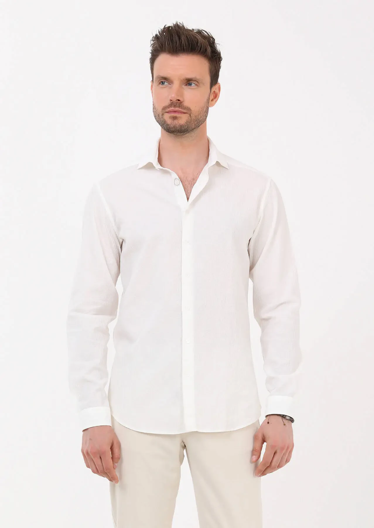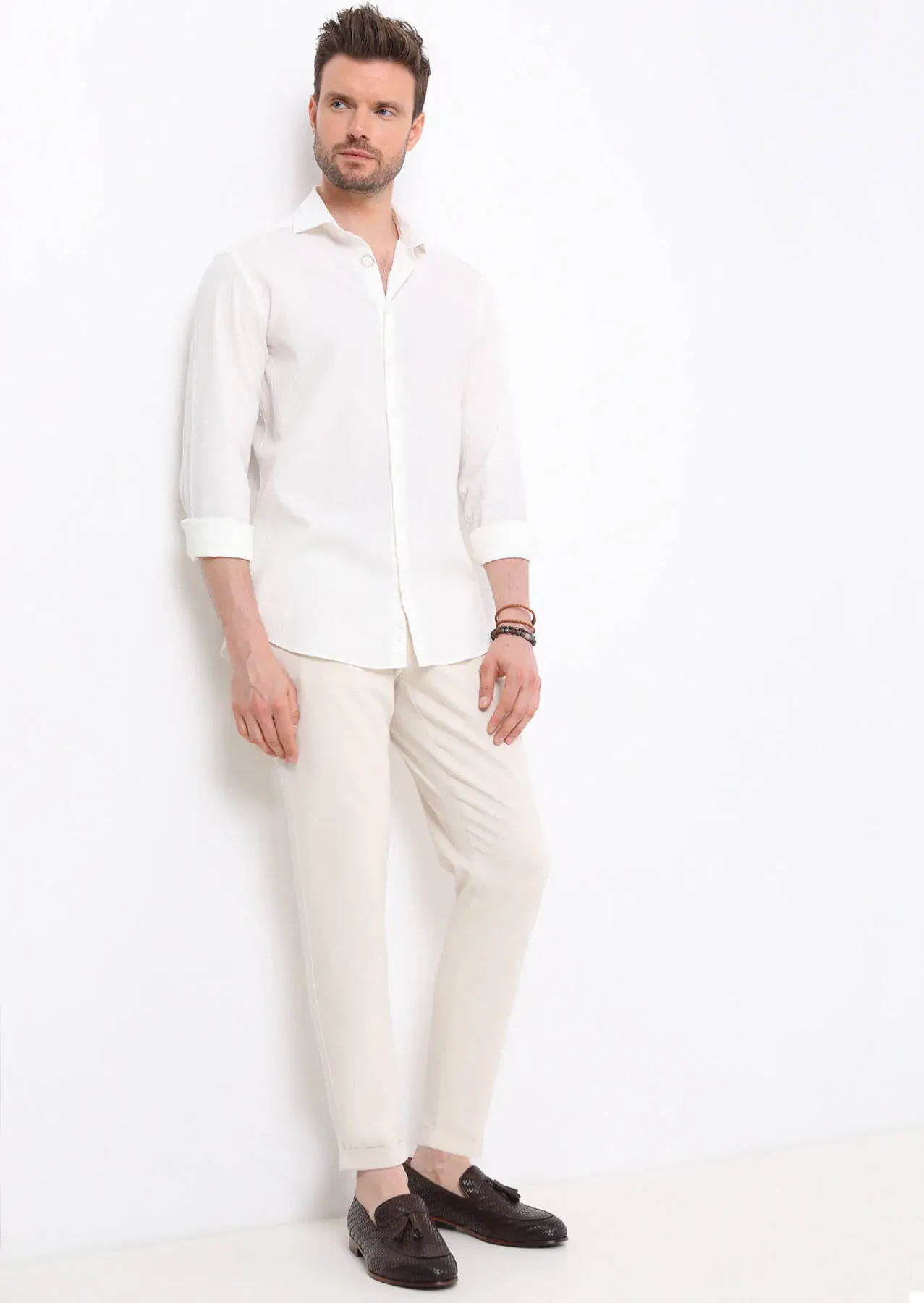 White Slim Fit Weaving Casual Cotton Blended Shirt