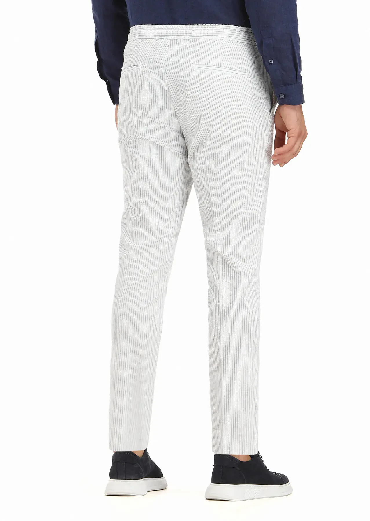 White Weaving Jogging Fit Casual Cotton Blended Trousers
