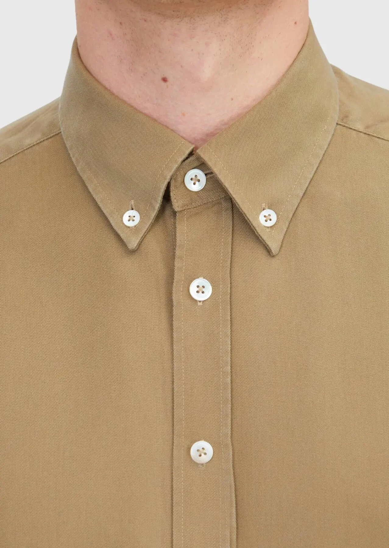 Yağ Yeşili Düz Dokuma Casual Gömlek