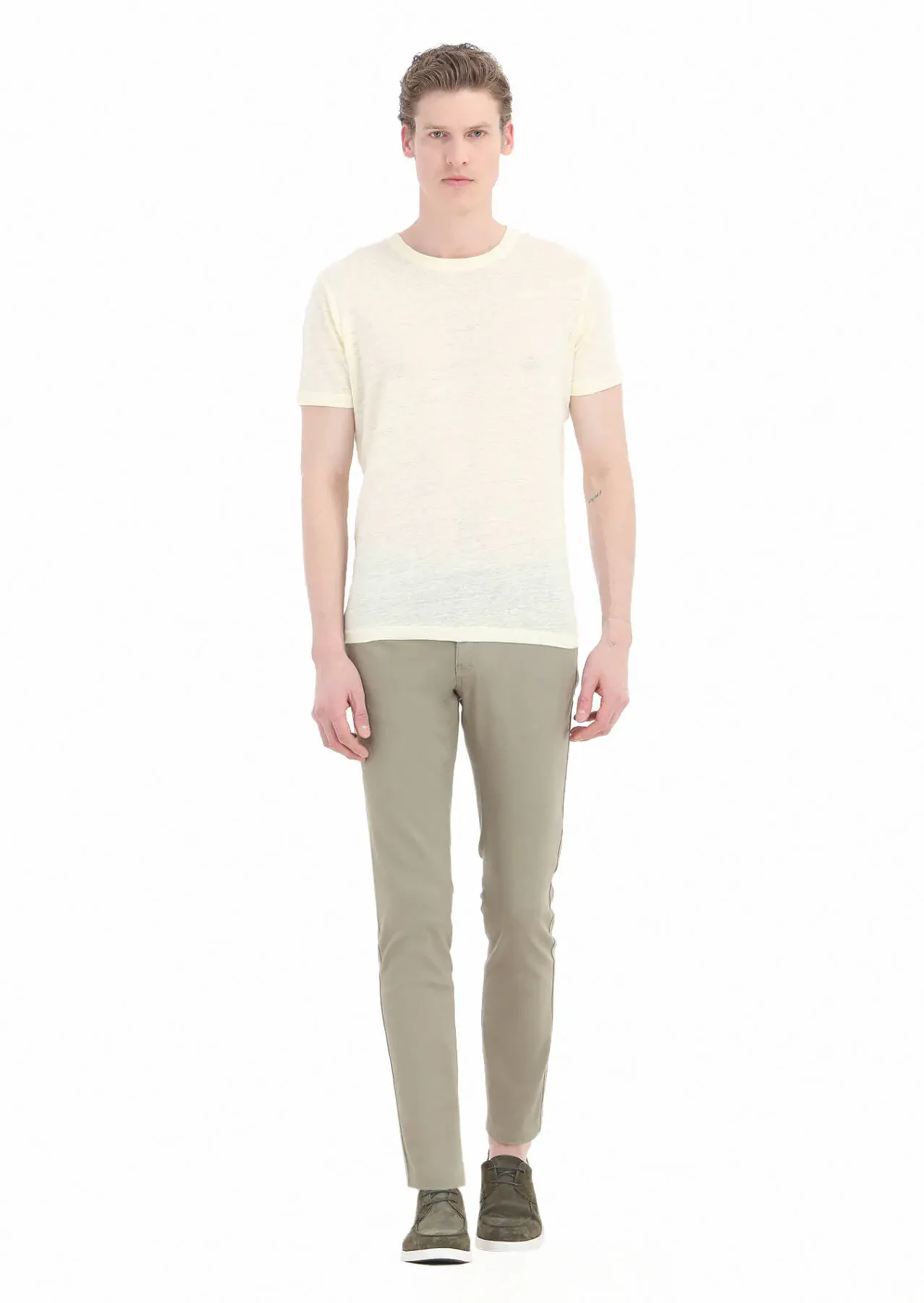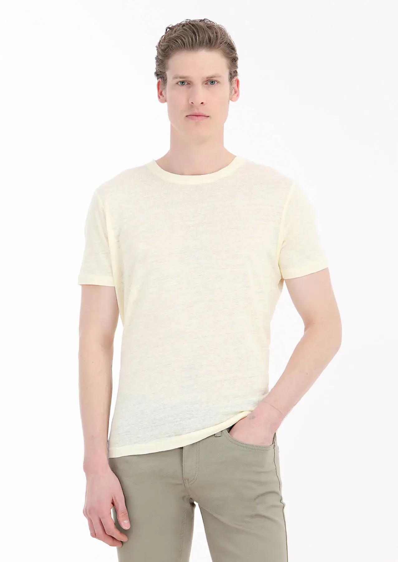 Yellow Plain Crew Neck 100% Linen T-Shirt
