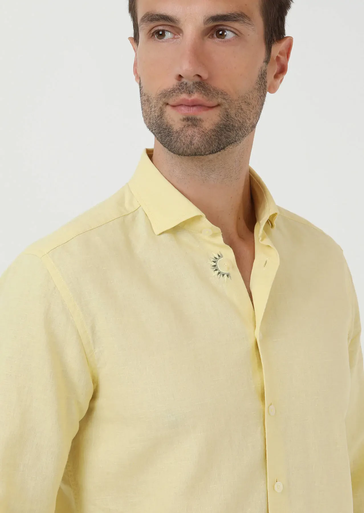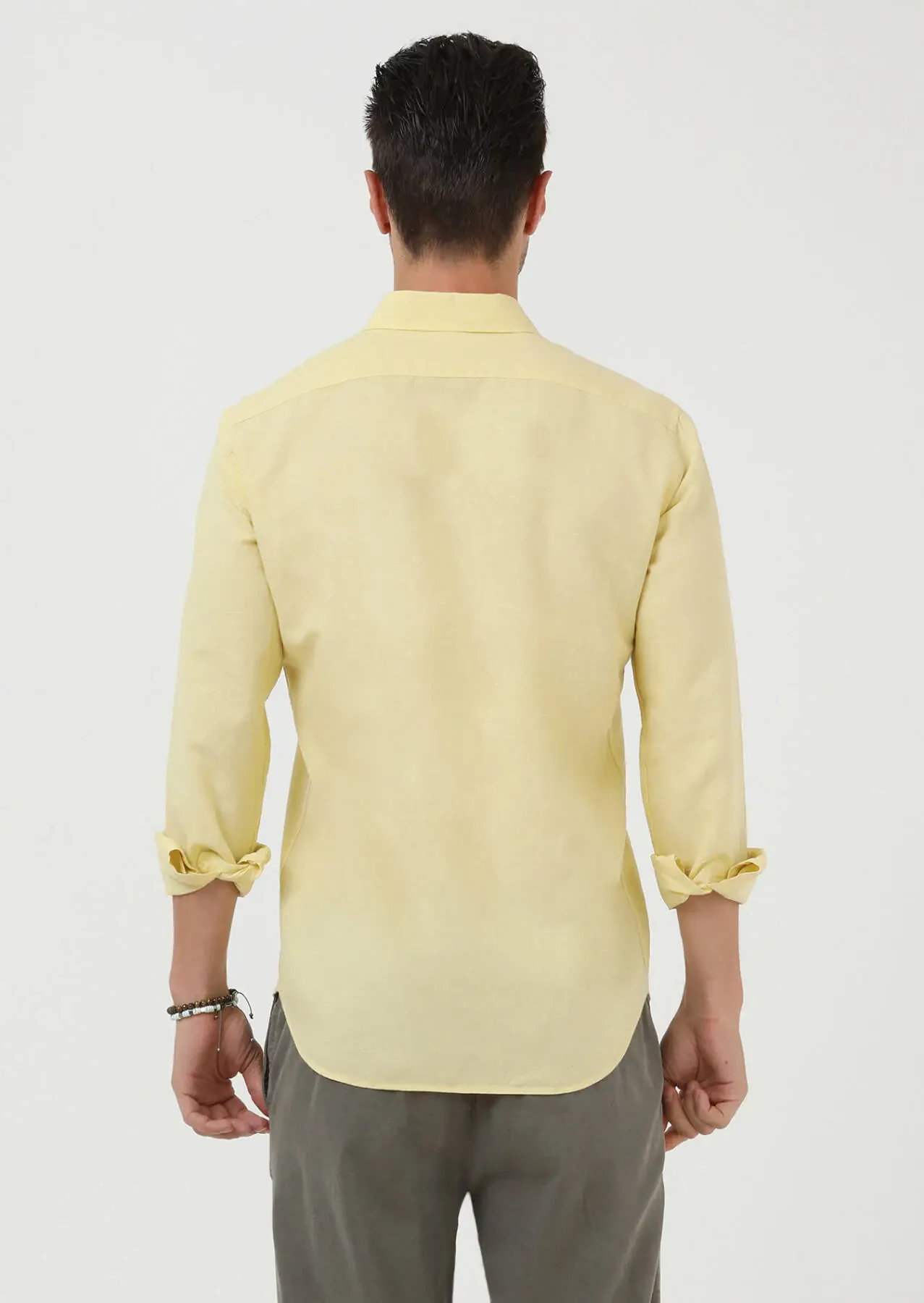 Yellow Plain Regular Fit Weaving Casual Cotton Blended Shirt