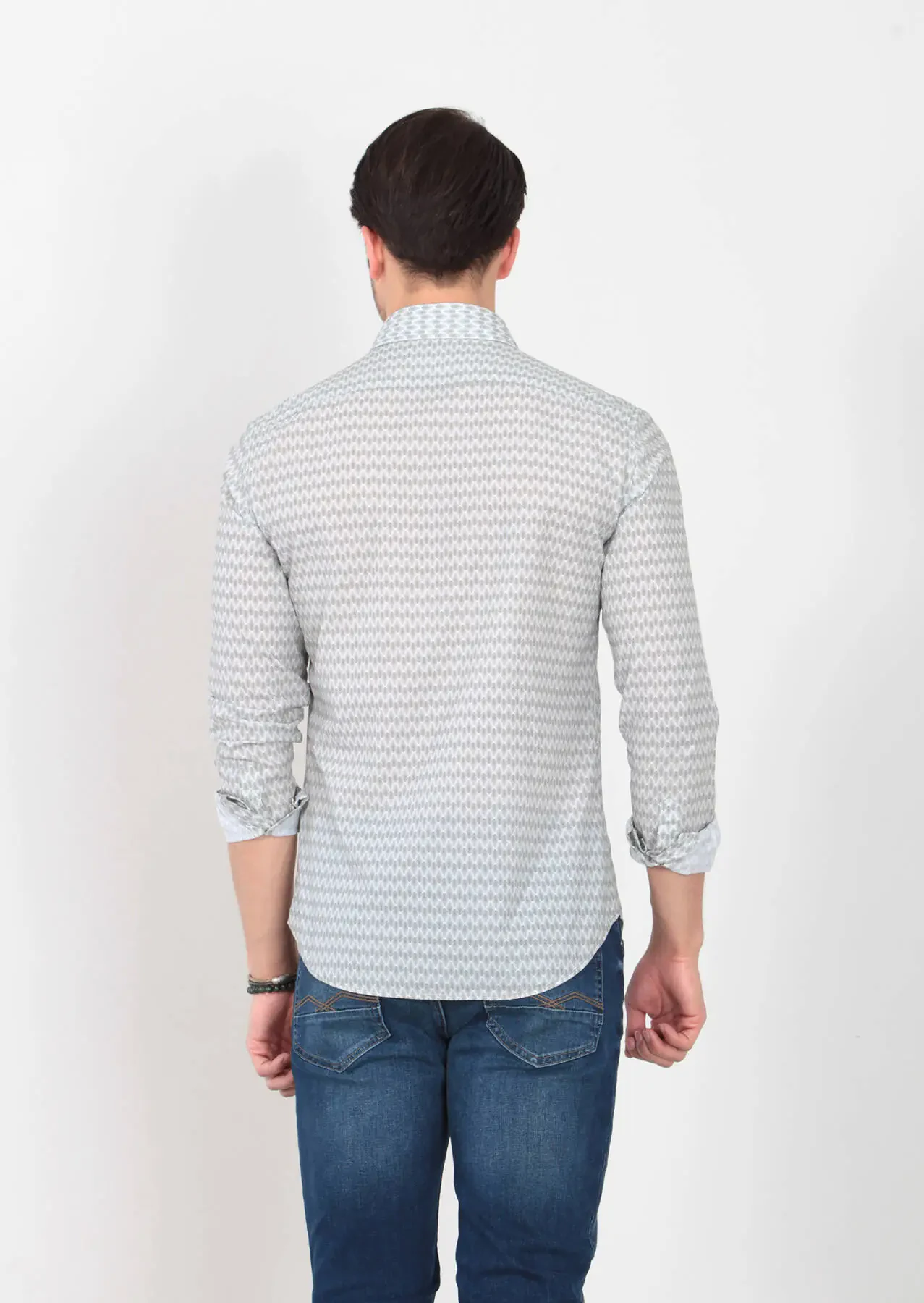 Yeşil Baskılı Slim Fit Dokuma Casual %100 Pamuk Gömlek